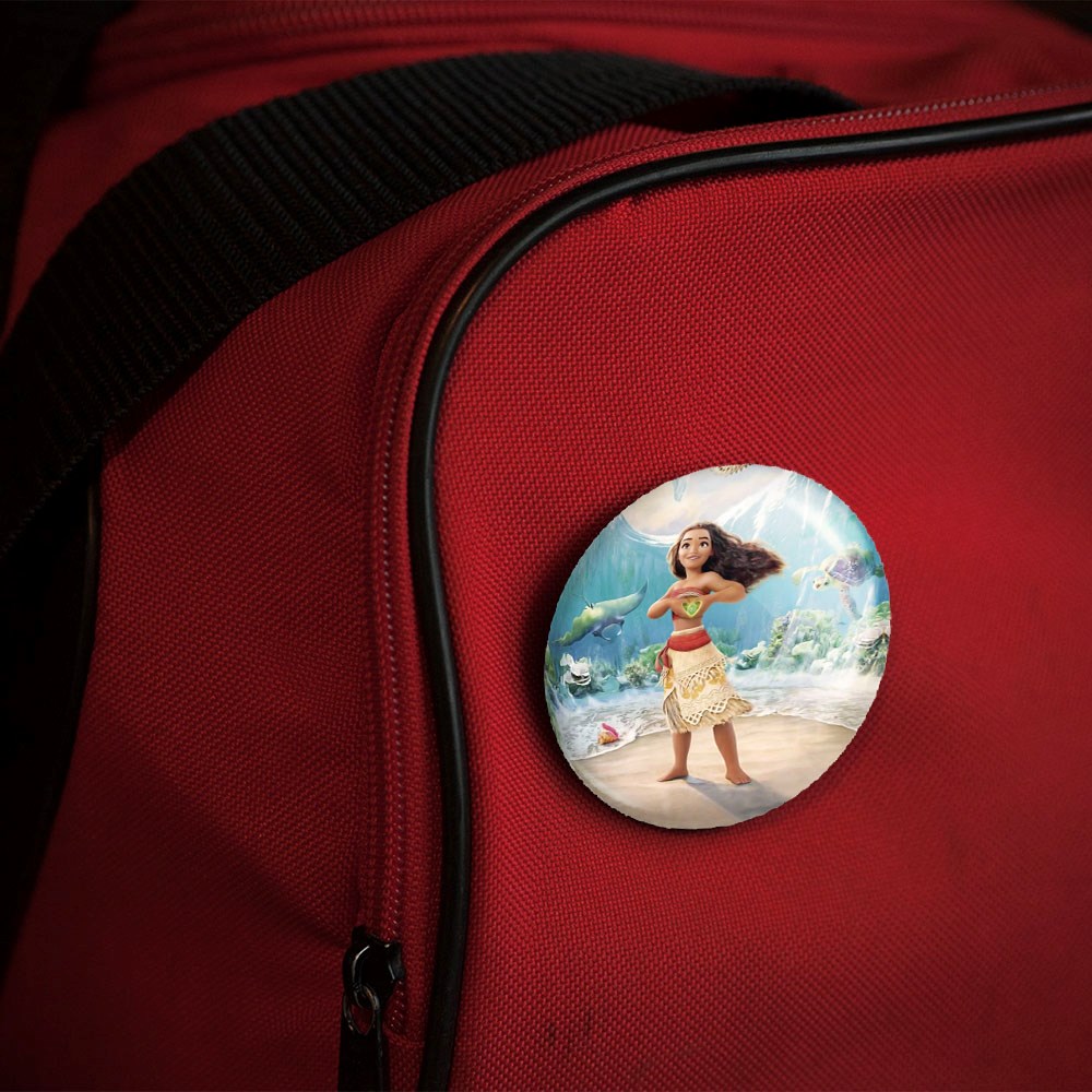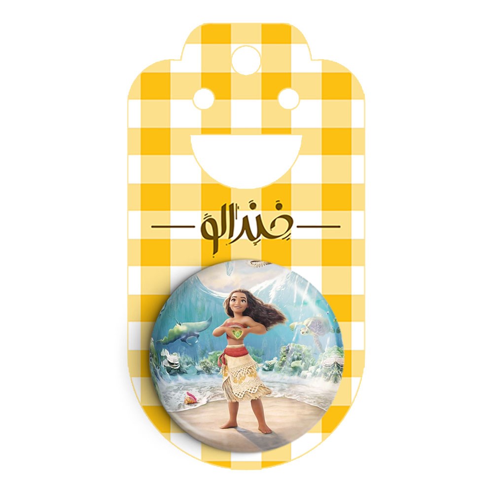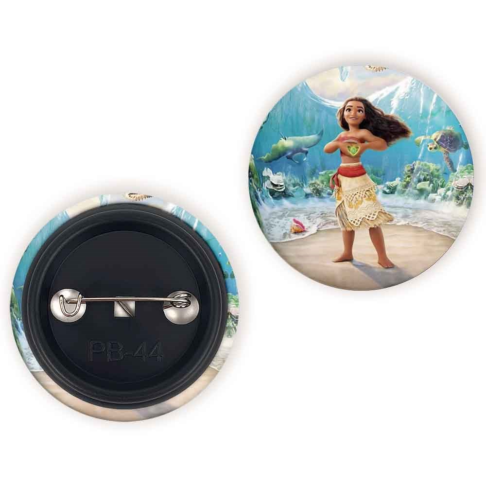 پیکسل 44 میلی متری موآنا Moana خندالو با روکش سلفون حرارتی مات مخملی ضدخش و قطعه پشتی رنگی تولید شده است.پلاستیکی پشت پیکسل با سوزن یک تکه ثابت و بدون لغزش و جا به جایی، ایستایی بسیار بهتری نسبت به پشتی فلزی پیکسل دارند که این مهم در تولید این محصول نیز رعایت شده است.