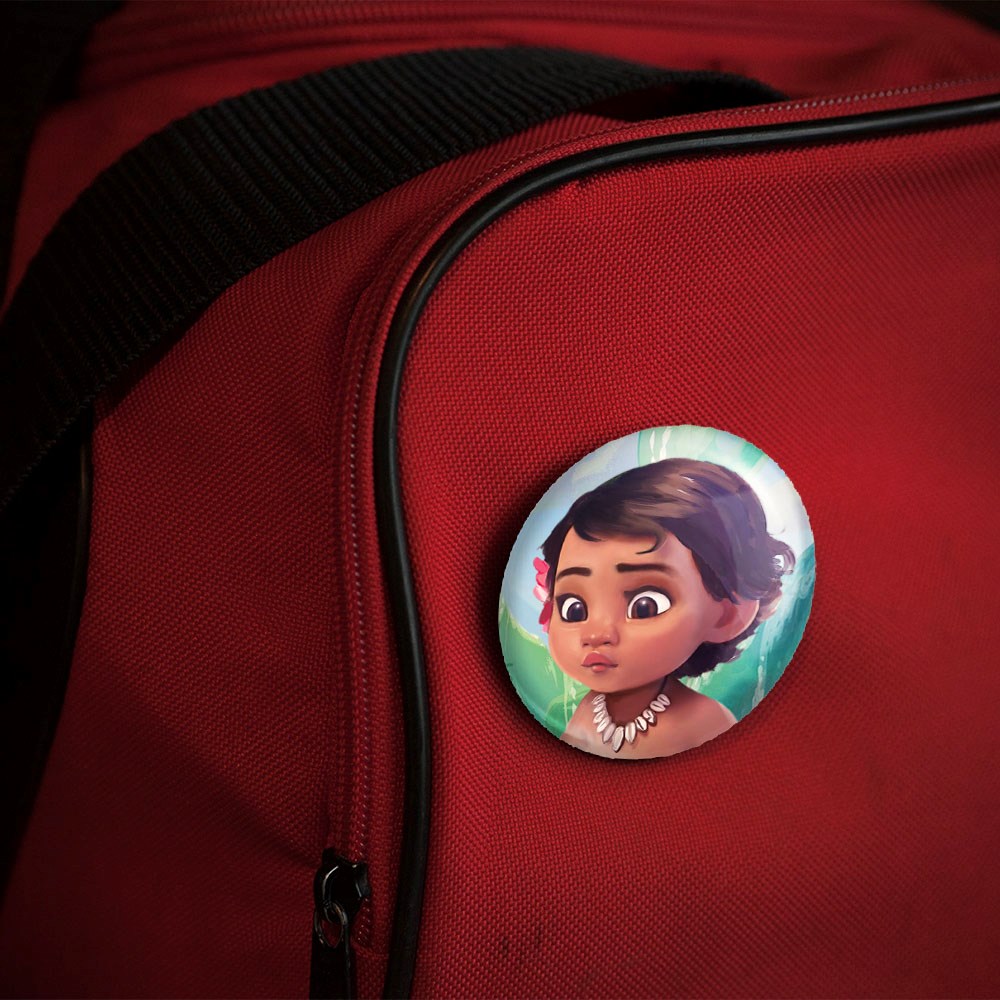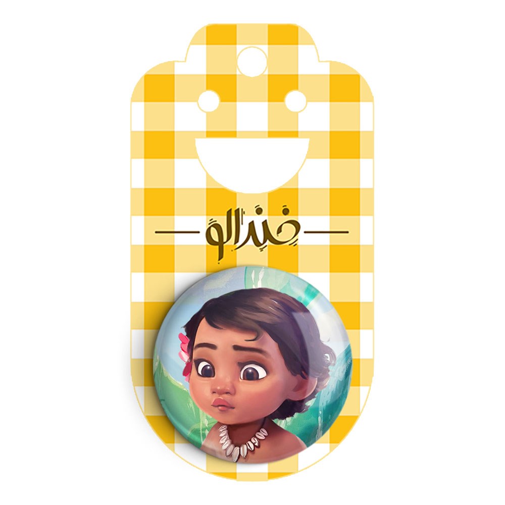 پیکسل 44 میلی متری موآنا Moana خندالو با روکش سلفون حرارتی مات مخملی ضدخش و قطعه پشتی رنگی تولید شده است.پلاستیکی پشت پیکسل با سوزن یک تکه ثابت و بدون لغزش و جا به جایی، ایستایی بسیار بهتری نسبت به پشتی فلزی پیکسل دارند که این مهم در تولید این محصول نیز رعایت شده است.