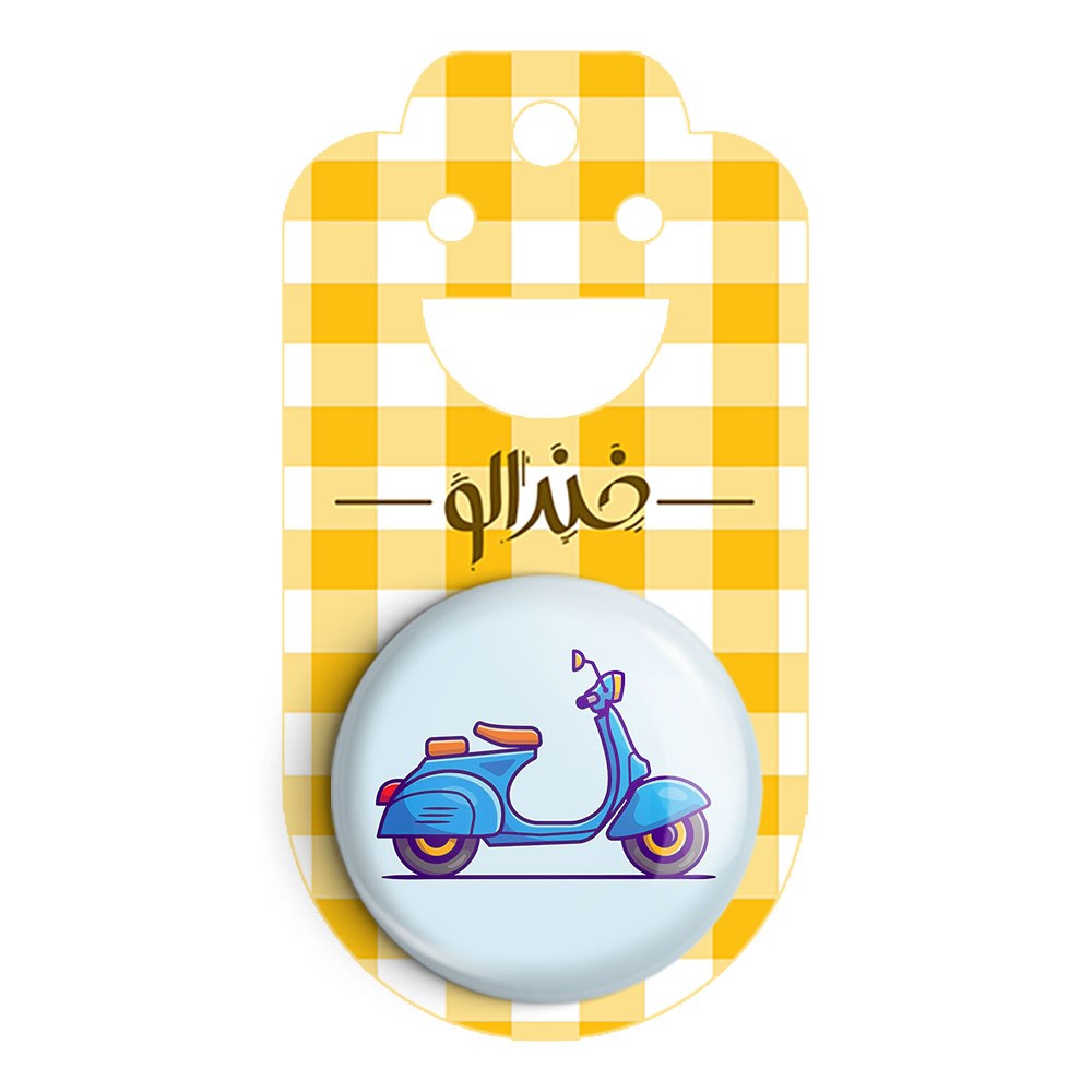 پیکسل 44 میلی متری موتورسیکلت خندالو با روکش سلفون حرارتی مات مخملی ضدخش و قطعه پشتی رنگی تولید شده است.پلاستیکی پشت پیکسل با سوزن یک تکه ثابت و بدون لغزش و جا به جایی، ایستایی بسیار بهتری نسبت به پشتی فلزی پیکسل دارند که این مهم در تولید این محصول نیز رعایت شده است.