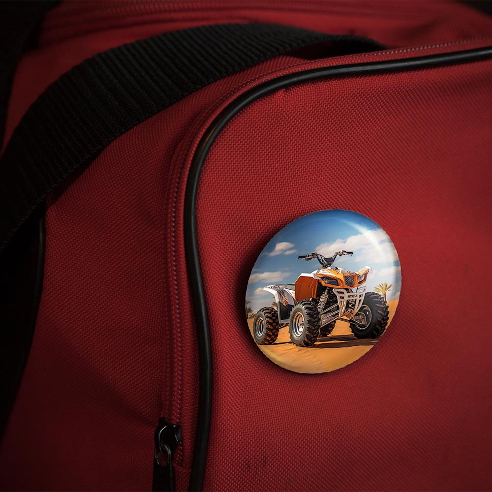 پیکسل 44 میلی متری موتور چهار چرخخندالو با روکش سلفون حرارتی مات مخملی ضدخش و قطعه پشتی رنگی تولید شده است. قطعات پلاستیکی پشت پیکسل با سوزن یک تکه ثابت و بدون لغزش و جا به جایی، ایستایی بسیار بهتری نسبت به پشتی فلزی پیکسل دارند که این مهم در تولید این محصول نیز رعایت شده است.
