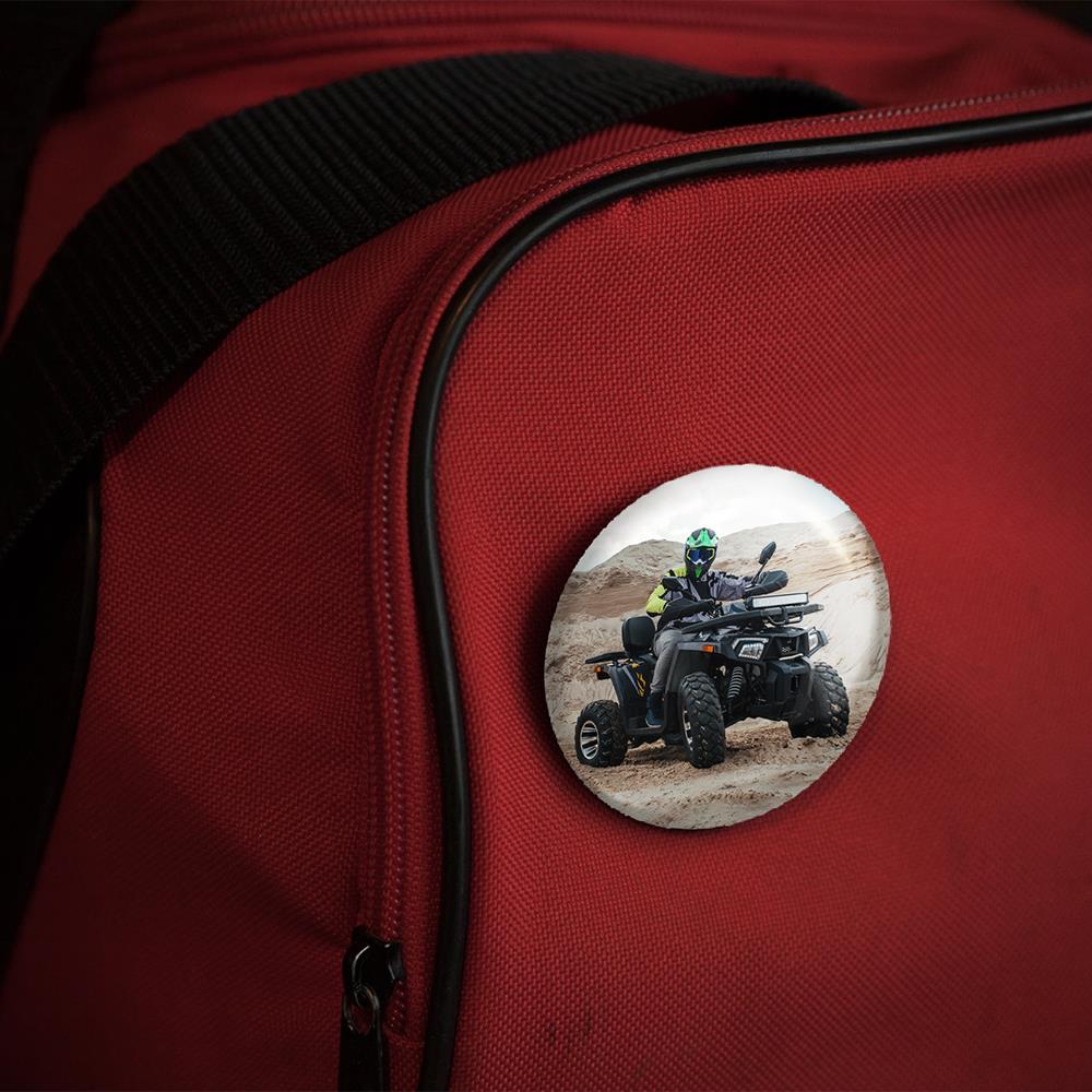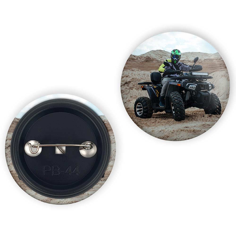 پیکسل 44 میلی متری موتور چهار چرخخندالو با روکش سلفون حرارتی مات مخملی ضدخش و قطعه پشتی رنگی تولید شده است. قطعات پلاستیکی پشت پیکسل با سوزن یک تکه ثابت و بدون لغزش و جا به جایی، ایستایی بسیار بهتری نسبت به پشتی فلزی پیکسل دارند که این مهم در تولید این محصول نیز رعایت شده است.