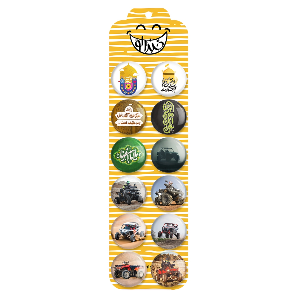 پک 12 عددی پیکسل خندالو طرح موتور چهار چرخ با روکش سلفون حرارتی براق ضدخش و قطعه پشتی رنگی تولید شده است. قطعات پشتی از میان 6 رنگ سفید، مشکی، صورتی، زرد، آبی و قرمز که با توجه به نوع و رنگبندی طرح روی پیکسل انتخاب شده اند تولید می شود و در هر بسته بندی مطابق عکس محصول می باشد. قطعات پلاستیکی پشت پیکسل با سوزن یک تکه ثابت و بدون لغزش و جا به جایی، ایستایی بسیار بهتری نسبت به پشتی فلزی پیکسل دارند که این مهم در تولید این محصول نیز رعایت شده است.