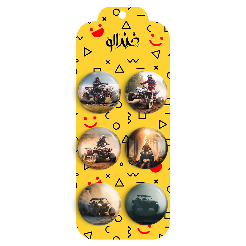 مجموعه 6 عددی پیکسل خندالو طرح موتور چهار چرخ با روکش سلفون حرارتی براق ضدخش و قطعه پشتی رنگی تولید شده است. قطعات پشتی از میان 6 رنگ سفید، مشکی، صورتی، زرد، آبی و قرمز که با توجه به نوع و رنگبندی طرح روی پیکسل انتخاب شده اند تولید می شود و در هر بسته بندی مطابق عکس محصول می باشد.