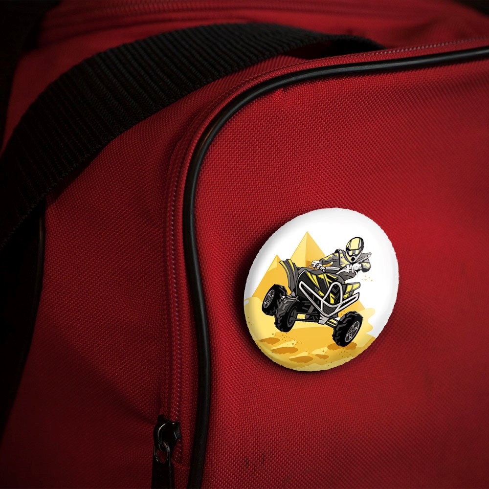 پیکسل 44 میلی متری موتور چهار چرخ خندالو با روکش سلفون حرارتی مات مخملی ضدخش و قطعه پشتی رنگی تولید شده است.پلاستیکی پشت پیکسل با سوزن یک تکه ثابت و بدون لغزش و جا به جایی، ایستایی بسیار بهتری نسبت به پشتی فلزی پیکسل دارند که این مهم در تولید این محصول نیز رعایت شده است.