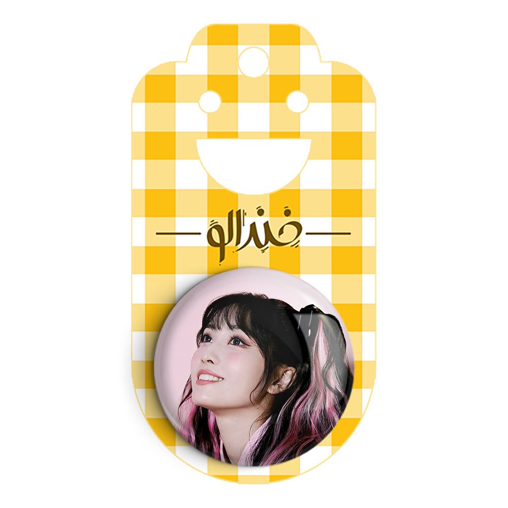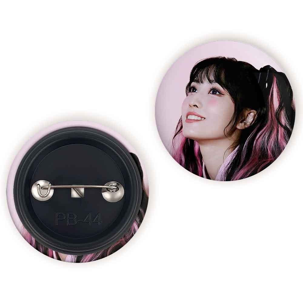 پیکسل 44 میلی متری مومو گروه توایس TWICE خندالو با روکش سلفون حرارتی مات مخملی ضدخش و قطعه پشتی رنگی تولید شده است.پلاستیکی پشت پیکسل با سوزن یک تکه ثابت و بدون لغزش و جا به جایی، ایستایی بسیار بهتری نسبت به پشتی فلزی پیکسل دارند که این مهم در تولید این محصول نیز رعایت شده است.