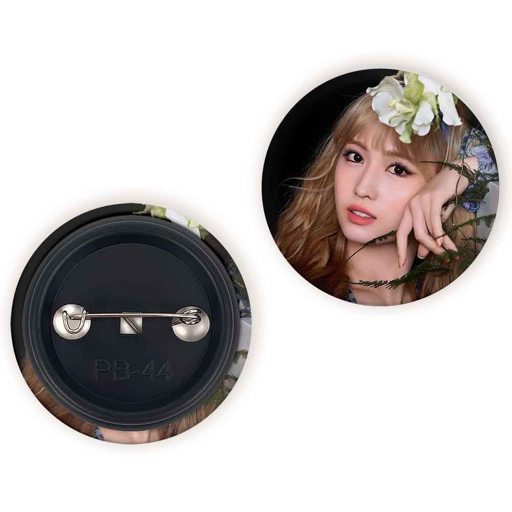 پیکسل 44 میلی متری مومو گروه توایس TWICE خندالو با روکش سلفون حرارتی مات مخملی ضدخش و قطعه پشتی رنگی تولید شده است.پلاستیکی پشت پیکسل با سوزن یک تکه ثابت و بدون لغزش و جا به جایی، ایستایی بسیار بهتری نسبت به پشتی فلزی پیکسل دارند که این مهم در تولید این محصول نیز رعایت شده است.
