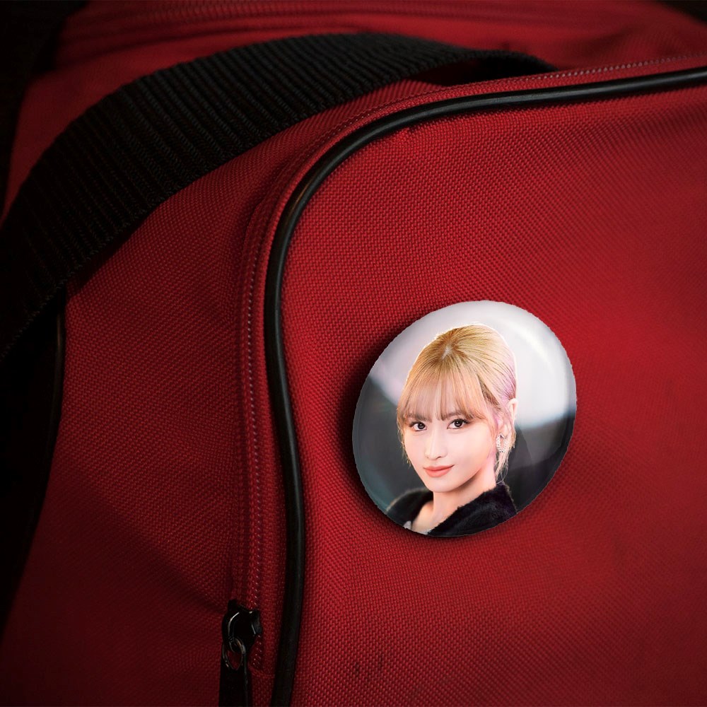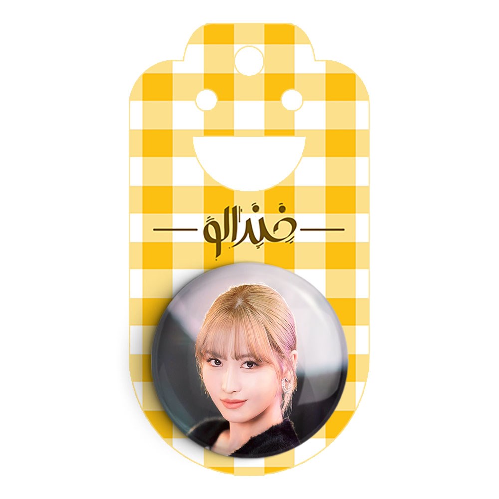 پیکسل 44 میلی متری مومو گروه توایس TWICE خندالو با روکش سلفون حرارتی مات مخملی ضدخش و قطعه پشتی رنگی تولید شده است.پلاستیکی پشت پیکسل با سوزن یک تکه ثابت و بدون لغزش و جا به جایی، ایستایی بسیار بهتری نسبت به پشتی فلزی پیکسل دارند که این مهم در تولید این محصول نیز رعایت شده است.