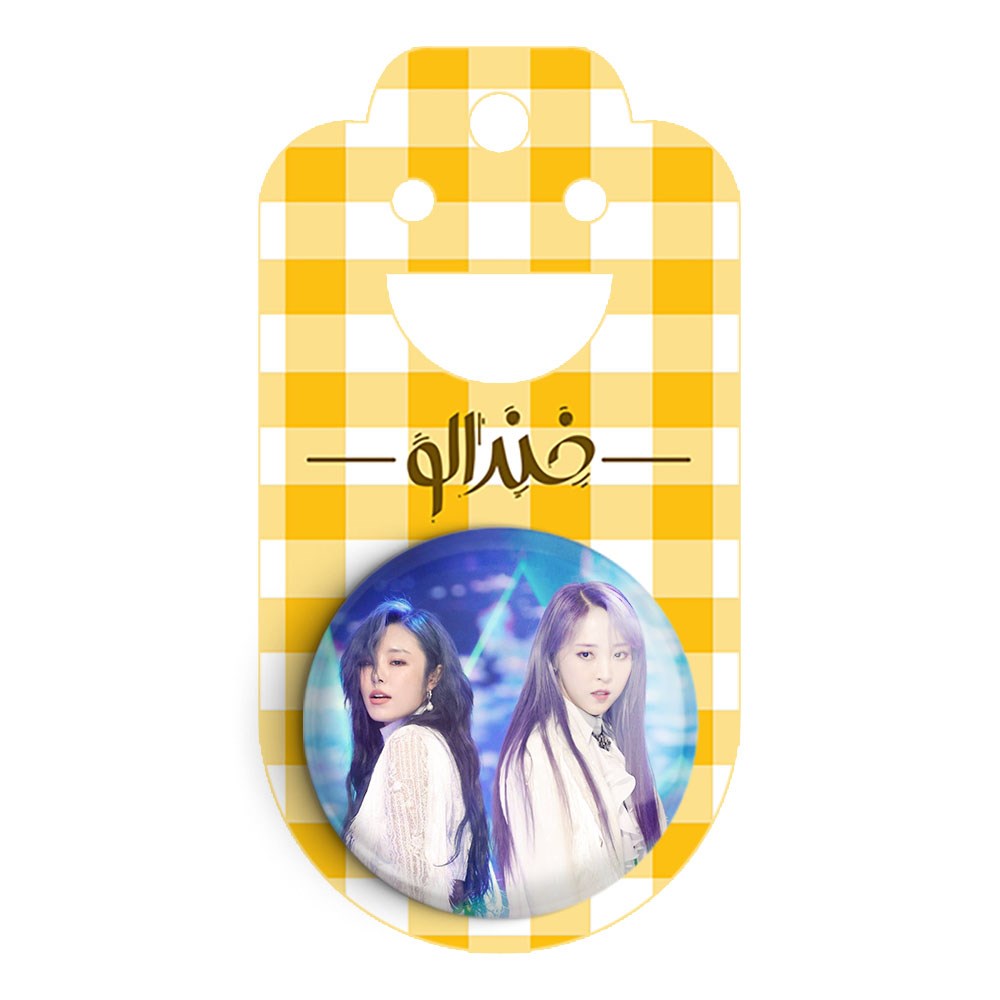 پیکسل 44 میلی متری مونبیول و ویین گروه مامامو Mamamoo خندالو با روکش سلفون حرارتی مات مخملی ضدخش و قطعه پشتی رنگی تولید شده است.پلاستیکی پشت پیکسل با سوزن یک تکه ثابت و بدون لغزش و جا به جایی، ایستایی بسیار بهتری نسبت به پشتی فلزی پیکسل دارند که این مهم در تولید این محصول نیز رعایت شده است.