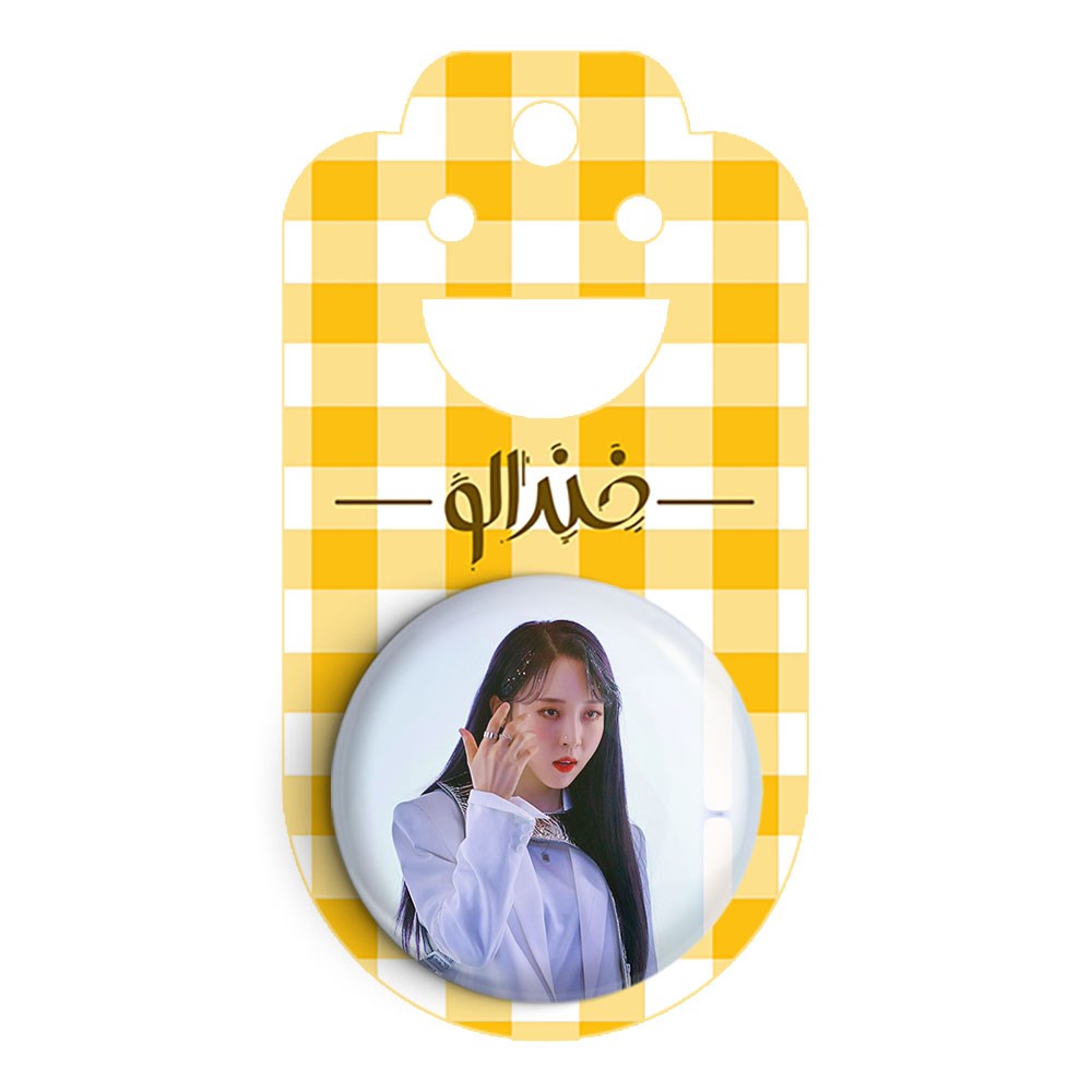 پیکسل 44 میلی متری مونبیول گروه مامامو Mamamoo خندالو با روکش سلفون حرارتی مات مخملی ضدخش و قطعه پشتی رنگی تولید شده است.پلاستیکی پشت پیکسل با سوزن یک تکه ثابت و بدون لغزش و جا به جایی، ایستایی بسیار بهتری نسبت به پشتی فلزی پیکسل دارند که این مهم در تولید این محصول نیز رعایت شده است.
