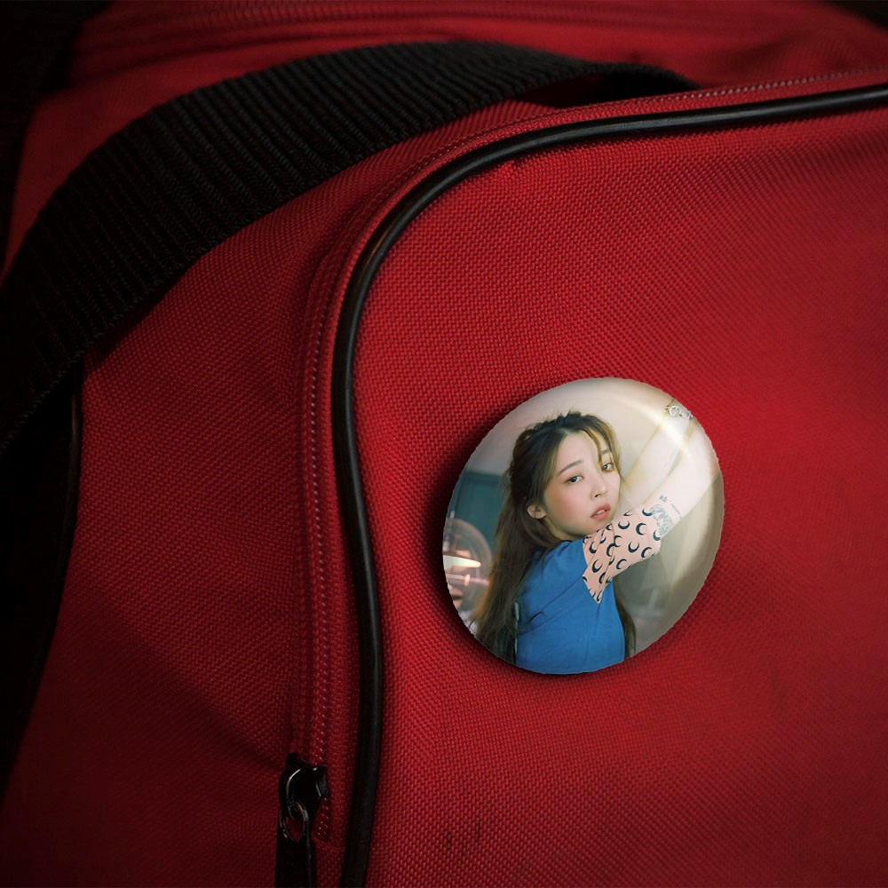 پیکسل 44 میلی متری مونبیول گروه مامامو Mamamoo خندالو با روکش سلفون حرارتی مات مخملی ضدخش و قطعه پشتی رنگی تولید شده است.پلاستیکی پشت پیکسل با سوزن یک تکه ثابت و بدون لغزش و جا به جایی، ایستایی بسیار بهتری نسبت به پشتی فلزی پیکسل دارند که این مهم در تولید این محصول نیز رعایت شده است.