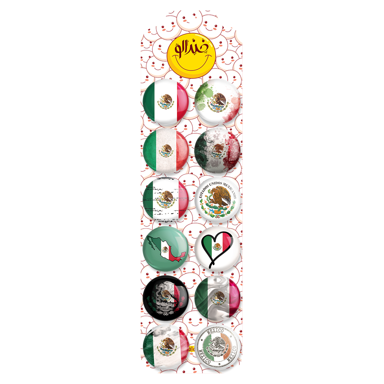 پک 12 عددی پیکسل خندالو طرح مکزیک (Mexico) با روکش سلفون حرارتی براق ضدخش و قطعه پشتی رنگی تولید شده است. قطعات پشتی از میان 6 رنگ سفید، مشکی، صورتی، زرد، آبی و قرمز که با توجه به نوع و رنگبندی طرح روی پیکسل انتخاب شده اند تولید می شود و در هر بسته بندی مطابق عکس محصول می باشد. قطعات پلاستیکی پشت پیکسل با سوزن یک تکه ثابت و بدون لغزش و جا به جایی، ایستایی بسیار بهتری نسبت به پشتی فلزی پیکسل دارند که این مهم در تولید این محصول نیز رعایت شده است. چاپ پیکسل طرح مکزیک (Mexico) بسته ۱۲ عددی نیز با دستگاه های استاندارد و با بهترین سطح کیفی صورت گرفته و طرح با شفافیتی مثال زدنی و با سلفونی بدون شکست نور بر روی پیکسل نقش بسته است.
