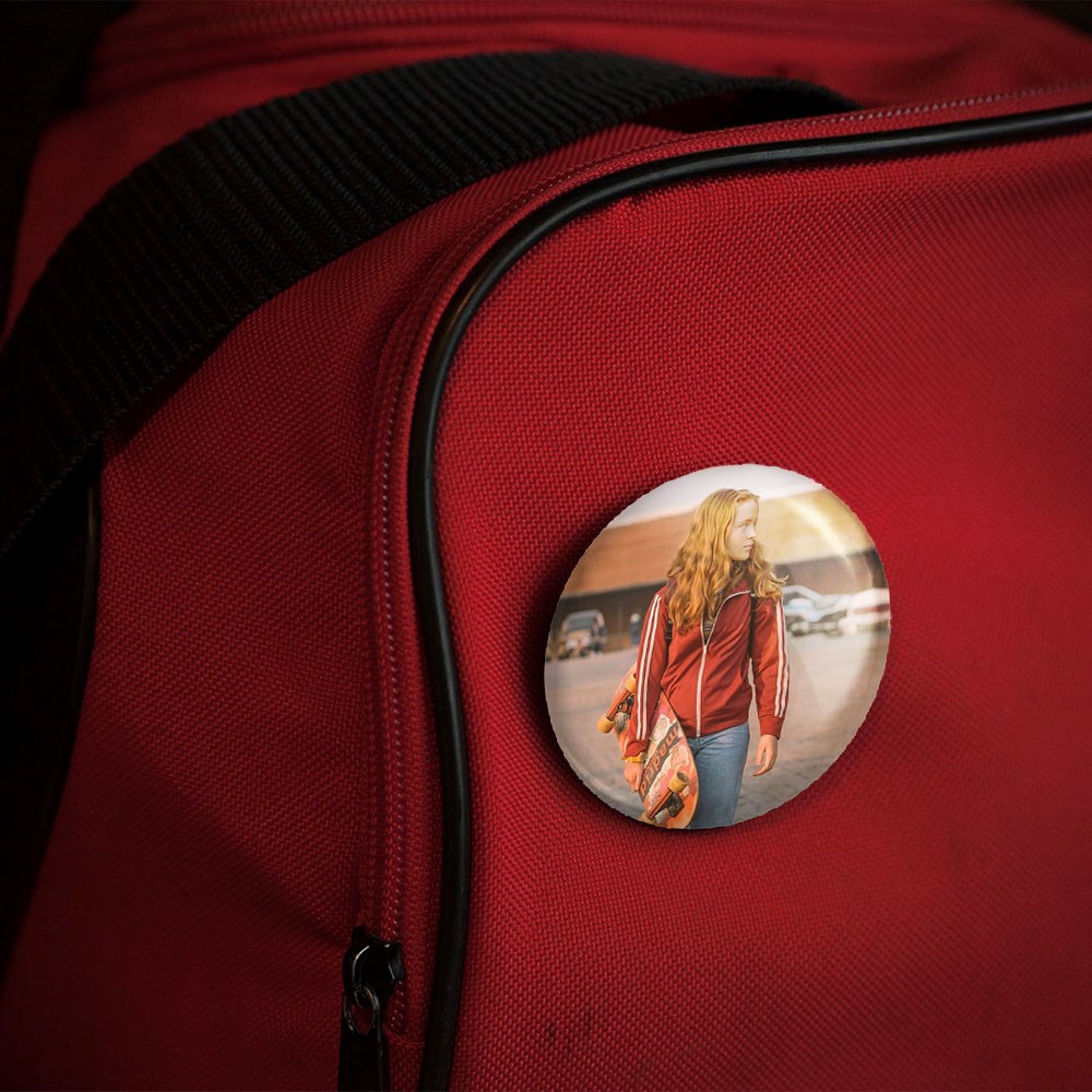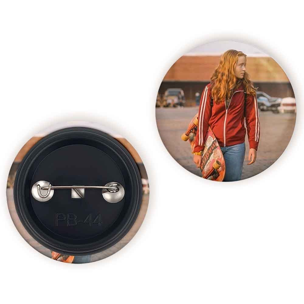 پیکسل 44 میلی متری مکس سریال استرنجر تینگز Stranger Things خندالو با روکش سلفون حرارتی مات مخملی ضدخش و قطعه پشتی رنگی تولید شده است.پلاستیکی پشت پیکسل با سوزن یک تکه ثابت و بدون لغزش و جا به جایی، ایستایی بسیار بهتری نسبت به پشتی فلزی پیکسل دارند که این مهم در تولید این محصول نیز رعایت شده است.