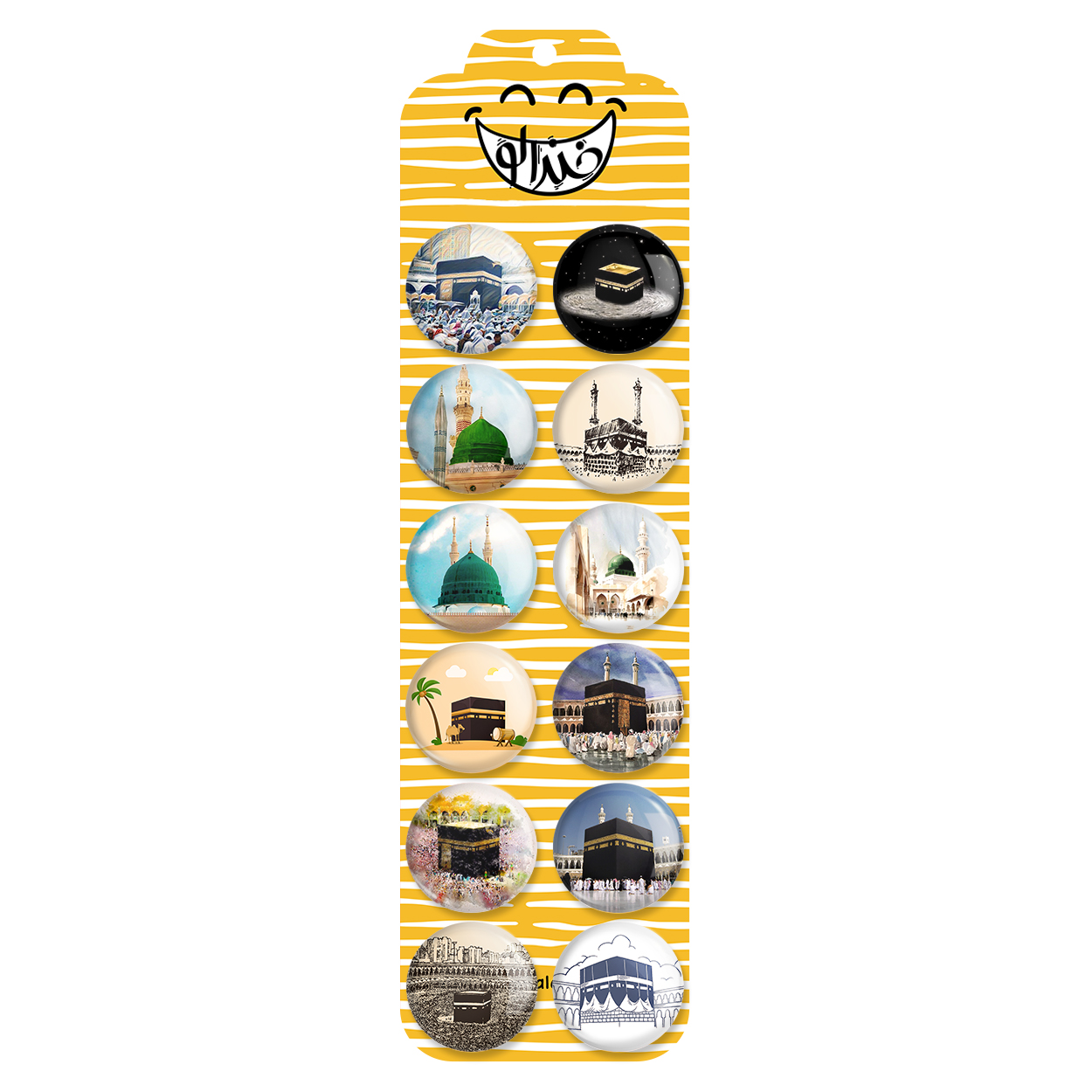 پک 12 عددی پیکسل خندالو طرح مکه و مدینه با روکش سلفون حرارتی براق ضدخش و قطعه پشتی رنگی تولید شده است. قطعات پشتی از میان 6 رنگ سفید، مشکی، صورتی، زرد، آبی و قرمز که با توجه به نوع و رنگبندی طرح روی پیکسل انتخاب شده اند تولید می شود و در هر بسته بندی مطابق عکس محصول می باشد. قطعات پلاستیکی پشت پیکسل با سوزن یک تکه ثابت و بدون لغزش و جا به جایی، ایستایی بسیار بهتری نسبت به پشتی فلزی پیکسل دارند که این مهم در تولید این محصول نیز رعایت شده است. چاپ پیکسل طرح مکه و مدینه بسته ۱۲ عددی نیز با دستگاه های استاندارد و با بهترین سطح کیفی صورت گرفته و طرح با شفافیتی مثال زدنی و با سلفونی بدون شکست نور بر روی پیکسل نقش بسته است.