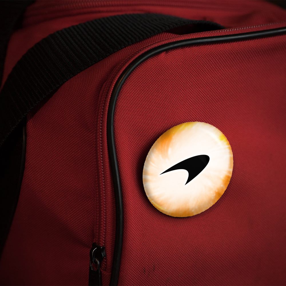 پیکسل 44 میلی متری مک لارن Mclarenخندالو با روکش سلفون حرارتی مات مخملی ضدخش و قطعه پشتی رنگی تولید شده است. قطعات پلاستیکی پشت پیکسل با سوزن یک تکه ثابت و بدون لغزش و جا به جایی، ایستایی بسیار بهتری نسبت به پشتی فلزی پیکسل دارند که این مهم در تولید این محصول نیز رعایت شده است.