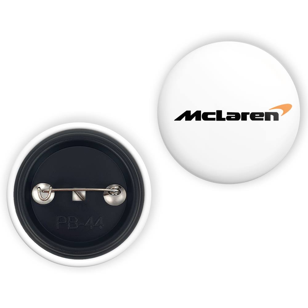 پیکسل 44 میلی متری مک لارن Mclarenخندالو با روکش سلفون حرارتی مات مخملی ضدخش و قطعه پشتی رنگی تولید شده است. قطعات پلاستیکی پشت پیکسل با سوزن یک تکه ثابت و بدون لغزش و جا به جایی، ایستایی بسیار بهتری نسبت به پشتی فلزی پیکسل دارند که این مهم در تولید این محصول نیز رعایت شده است.