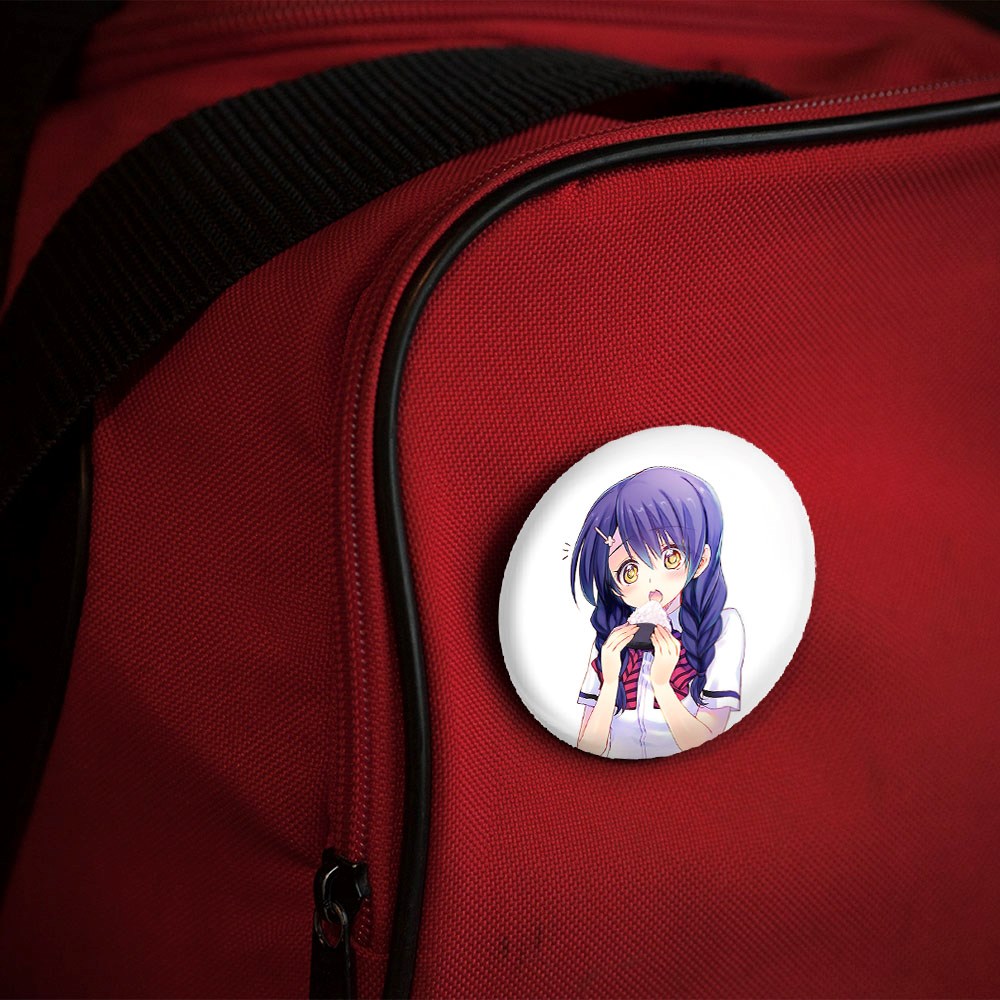 پیکسل 44 میلی متری مگومی انیمه جنگ غذاها Food Wars خندالو با روکش سلفون حرارتی مات مخملی ضدخش و قطعه پشتی رنگی تولید شده است.پلاستیکی پشت پیکسل با سوزن یک تکه ثابت و بدون لغزش و جا به جایی، ایستایی بسیار بهتری نسبت به پشتی فلزی پیکسل دارند که این مهم در تولید این محصول نیز رعایت شده است.