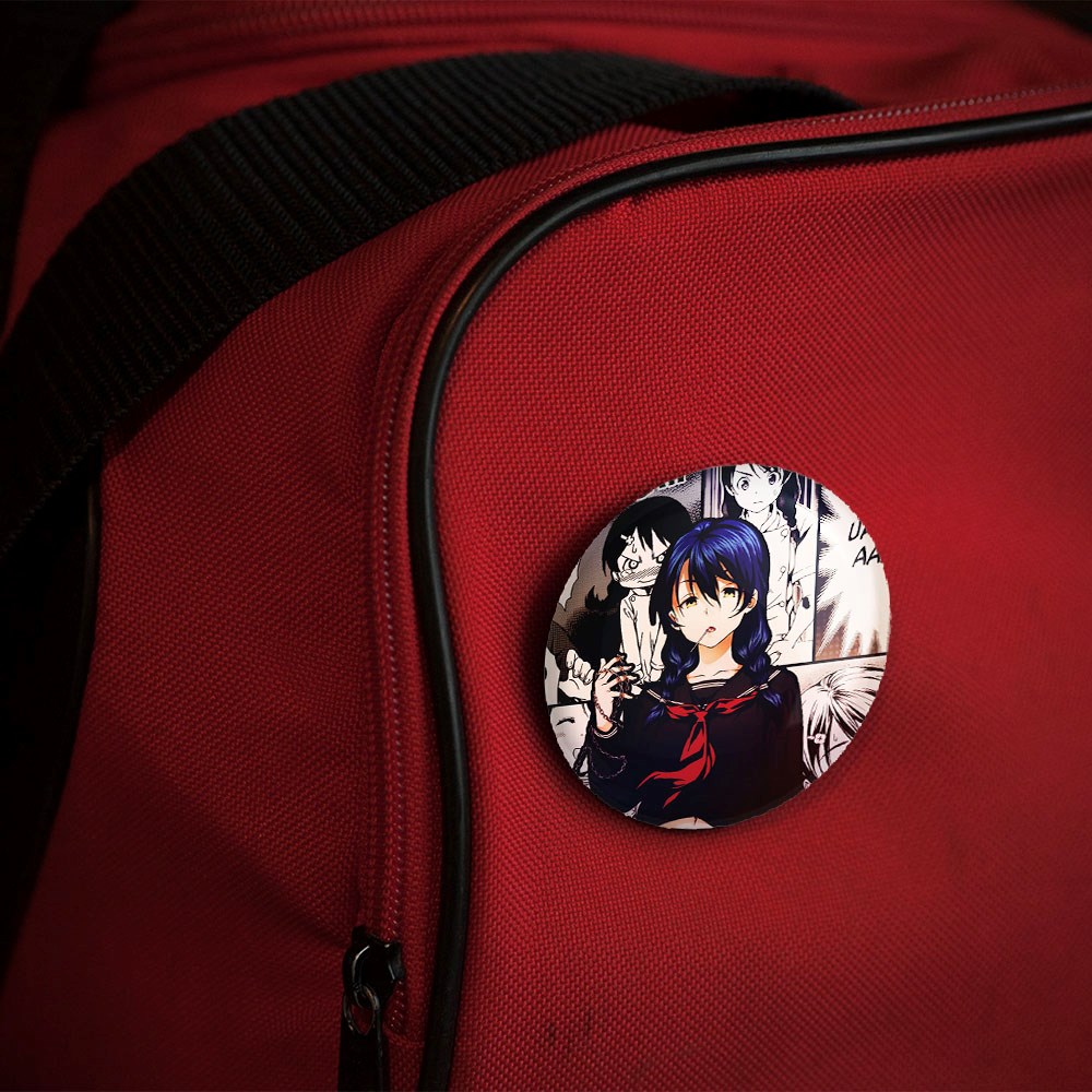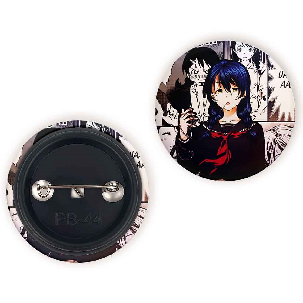 پیکسل 44 میلی متری مگومی انیمه جنگ غذاها Food Wars خندالو با روکش سلفون حرارتی مات مخملی ضدخش و قطعه پشتی رنگی تولید شده است.پلاستیکی پشت پیکسل با سوزن یک تکه ثابت و بدون لغزش و جا به جایی، ایستایی بسیار بهتری نسبت به پشتی فلزی پیکسل دارند که این مهم در تولید این محصول نیز رعایت شده است.