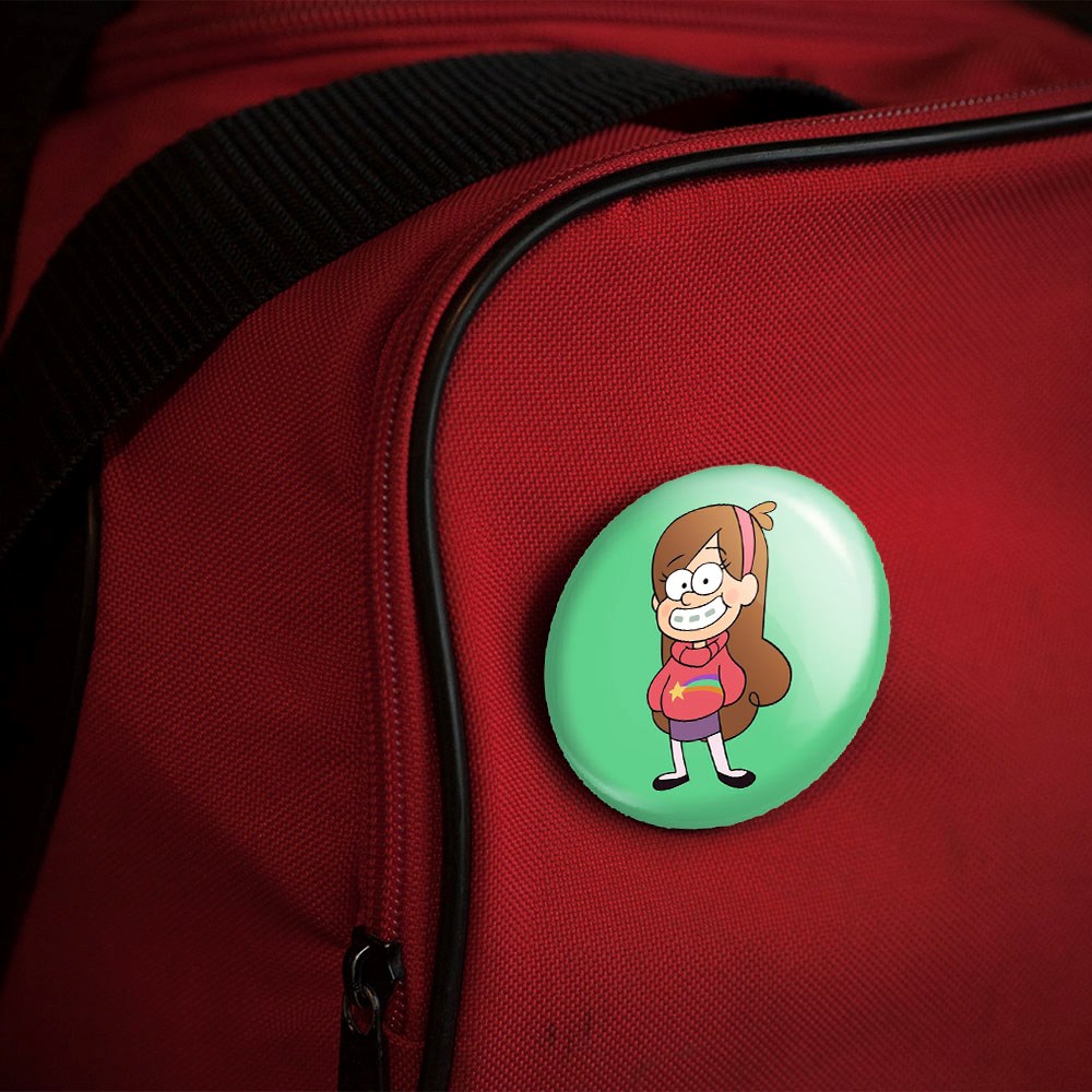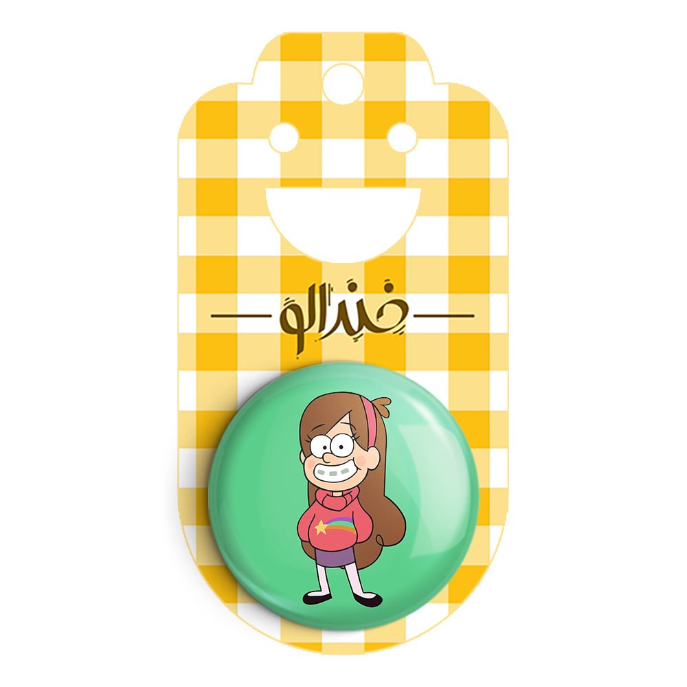 پیکسل 44 میلی متری میبل انیمیشن آبشار جاذبه Gravity Falls خندالو با روکش سلفون حرارتی مات مخملی ضدخش و قطعه پشتی رنگی تولید شده است.پلاستیکی پشت پیکسل با سوزن یک تکه ثابت و بدون لغزش و جا به جایی، ایستایی بسیار بهتری نسبت به پشتی فلزی پیکسل دارند که این مهم در تولید این محصول نیز رعایت شده است.