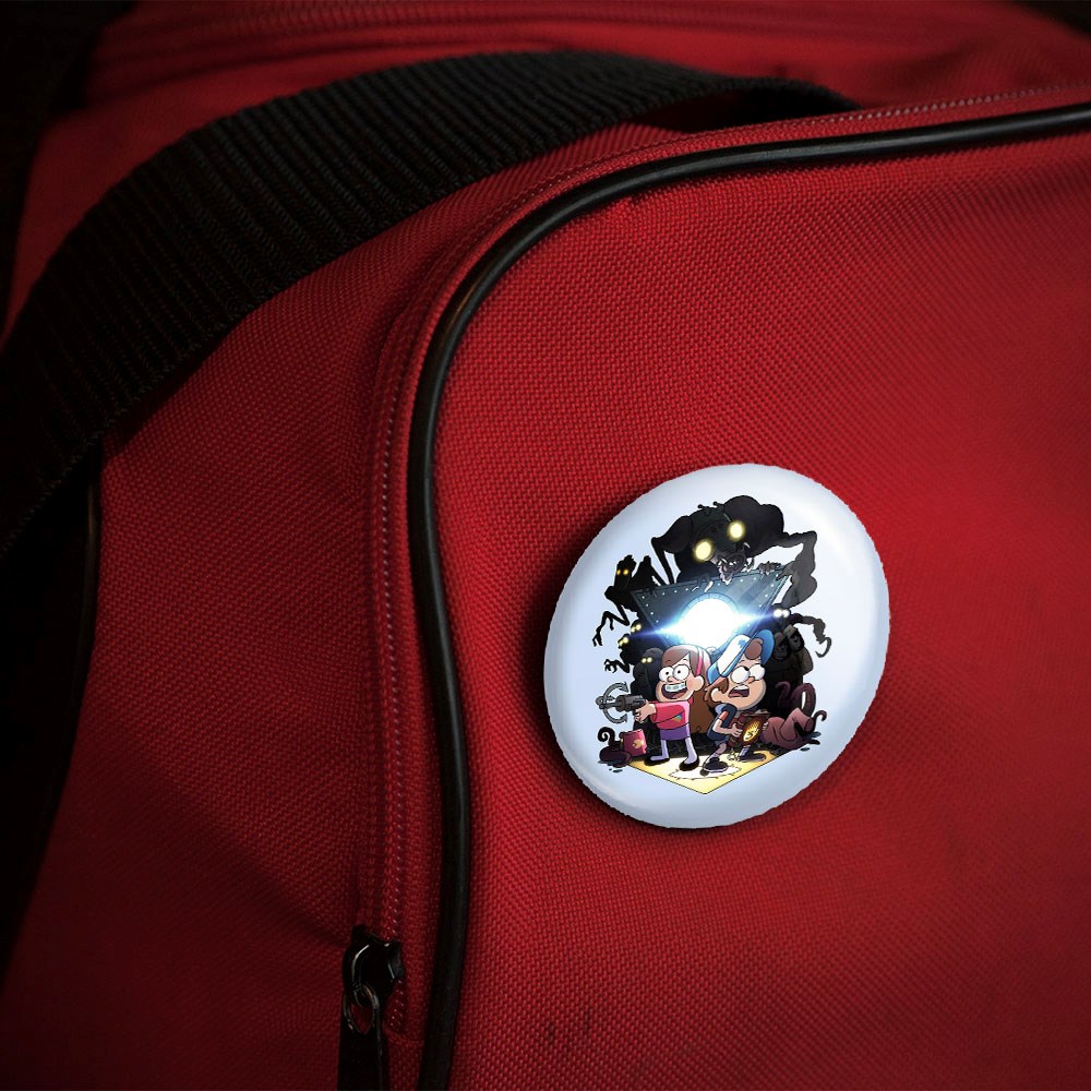 پیکسل 44 میلی متری میبل و دیپر انیمیشن آبشار جاذبه Gravity Falls خندالو با روکش سلفون حرارتی مات مخملی ضدخش و قطعه پشتی رنگی تولید شده است.پلاستیکی پشت پیکسل با سوزن یک تکه ثابت و بدون لغزش و جا به جایی، ایستایی بسیار بهتری نسبت به پشتی فلزی پیکسل دارند که این مهم در تولید این محصول نیز رعایت شده است.