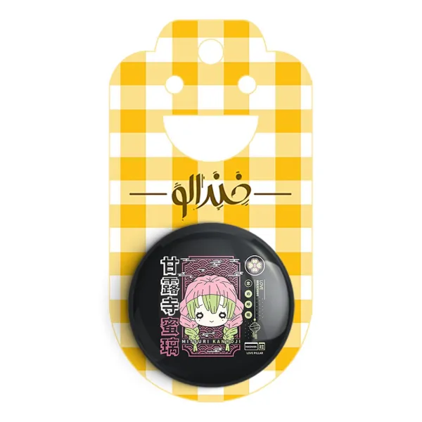 پیکسل 44 میلی متری میتسوری کانروجی انیمه شیطان کش خندالو با روکش سلفون حرارتی مات مخملی ضدخش و قطعه پشتی رنگی تولید شده است.پلاستیکی پشت پیکسل با سوزن یک تکه ثابت و بدون لغزش و جا به جایی، ایستایی بسیار بهتری نسبت به پشتی فلزی پیکسل دارند که این مهم در تولید این محصول نیز رعایت شده است.