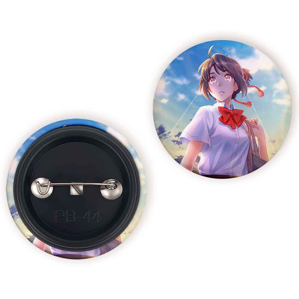 پیکسل 44 میلی متری میتسویا میامیزو انیمه یورنیم Your Name خندالو با روکش سلفون حرارتی مات مخملی ضدخش و قطعه پشتی رنگی تولید شده است.پلاستیکی پشت پیکسل با سوزن یک تکه ثابت و بدون لغزش و جا به جایی، ایستایی بسیار بهتری نسبت به پشتی فلزی پیکسل دارند که این مهم در تولید این محصول نیز رعایت شده است.