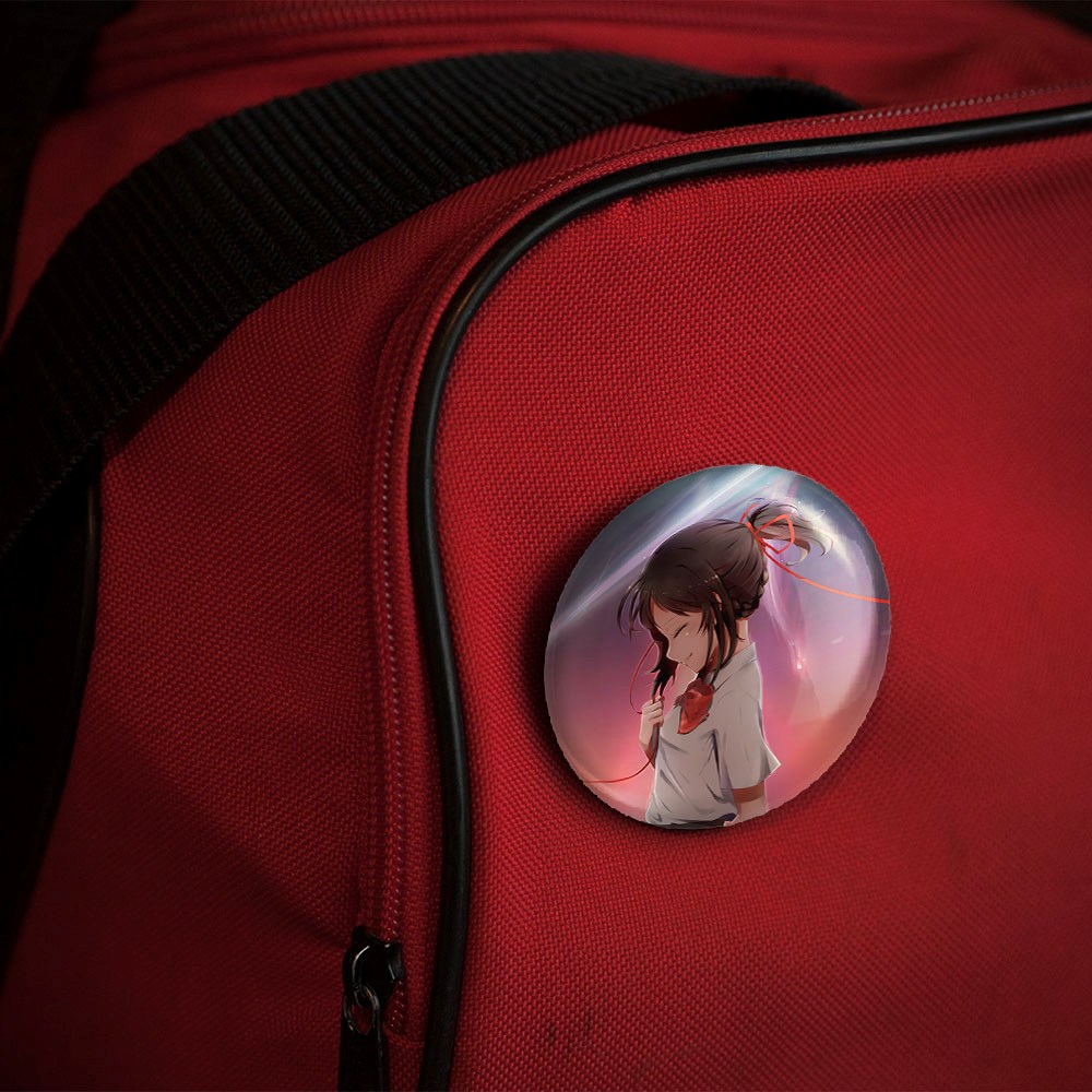 پیکسل 44 میلی متری میتسویا میامیزو انیمه یورنیم Your Name خندالو با روکش سلفون حرارتی مات مخملی ضدخش و قطعه پشتی رنگی تولید شده است.پلاستیکی پشت پیکسل با سوزن یک تکه ثابت و بدون لغزش و جا به جایی، ایستایی بسیار بهتری نسبت به پشتی فلزی پیکسل دارند که این مهم در تولید این محصول نیز رعایت شده است.