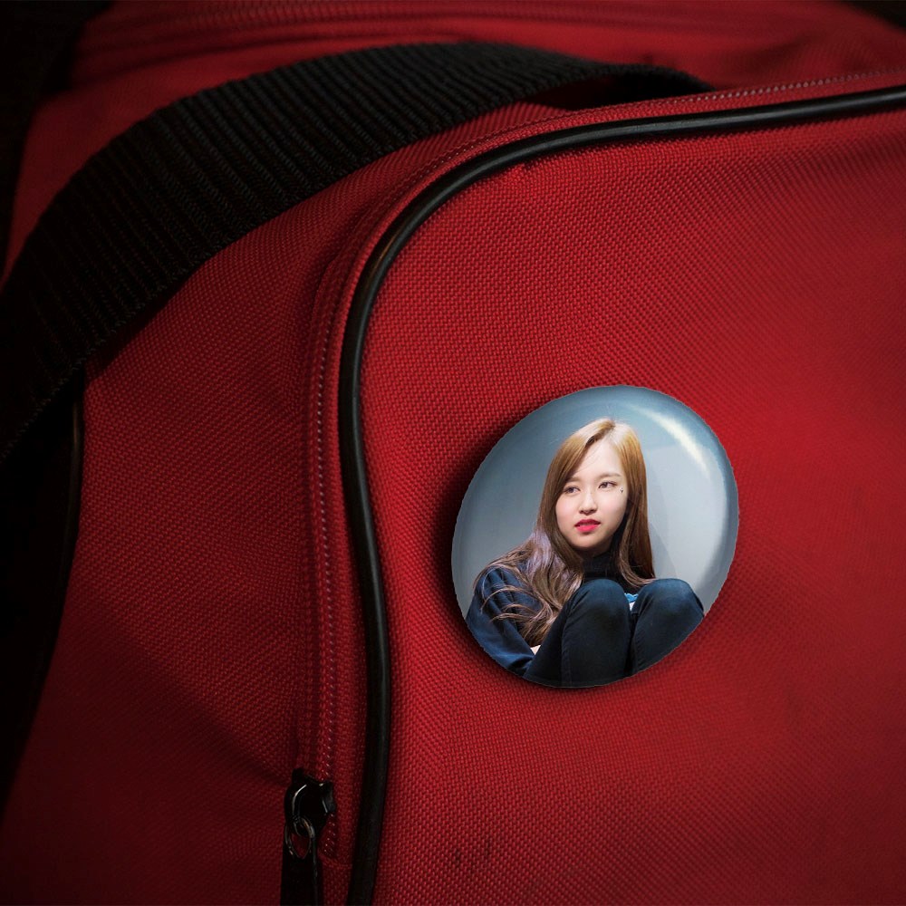 پیکسل 44 میلی متری مینا گروه توایس TWICE خندالو با روکش سلفون حرارتی مات مخملی ضدخش و قطعه پشتی رنگی تولید شده است.پلاستیکی پشت پیکسل با سوزن یک تکه ثابت و بدون لغزش و جا به جایی، ایستایی بسیار بهتری نسبت به پشتی فلزی پیکسل دارند که این مهم در تولید این محصول نیز رعایت شده است.