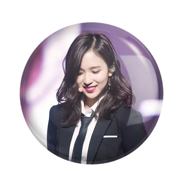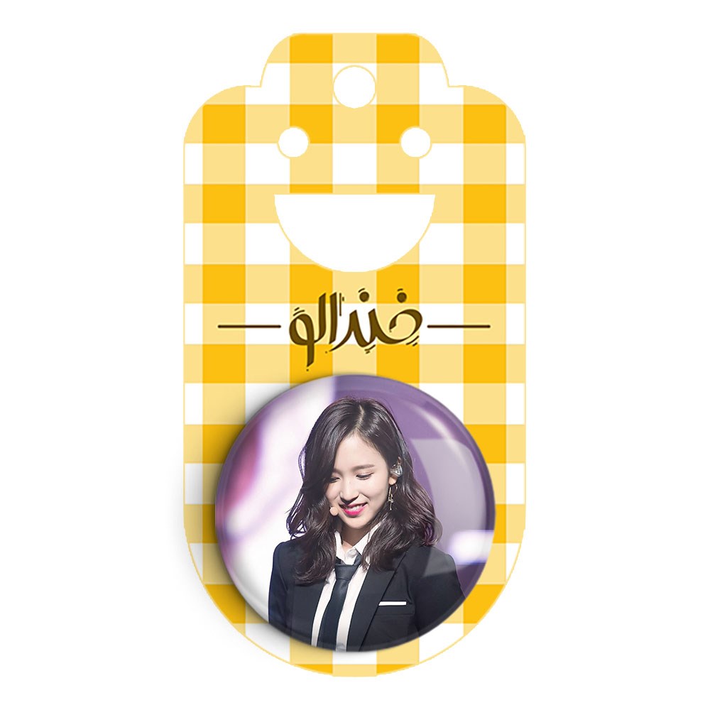 پیکسل 44 میلی متری مینا گروه توایس TWICE خندالو با روکش سلفون حرارتی مات مخملی ضدخش و قطعه پشتی رنگی تولید شده است.پلاستیکی پشت پیکسل با سوزن یک تکه ثابت و بدون لغزش و جا به جایی، ایستایی بسیار بهتری نسبت به پشتی فلزی پیکسل دارند که این مهم در تولید این محصول نیز رعایت شده است.