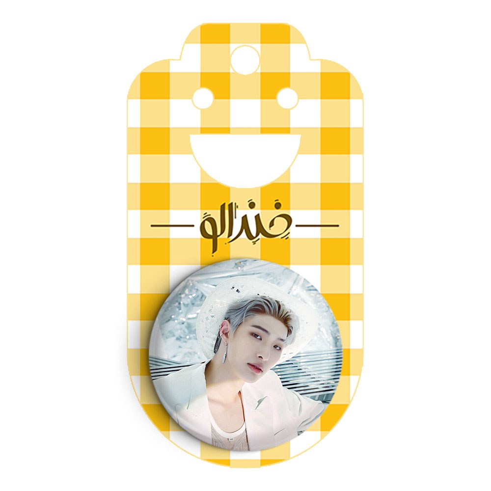 پیکسل 44 میلی متری مینگی گروه ایتیز ATEEZ خندالو با روکش سلفون حرارتی مات مخملی ضدخش و قطعه پشتی رنگی تولید شده است.پلاستیکی پشت پیکسل با سوزن یک تکه ثابت و بدون لغزش و جا به جایی، ایستایی بسیار بهتری نسبت به پشتی فلزی پیکسل دارند که این مهم در تولید این محصول نیز رعایت شده است.