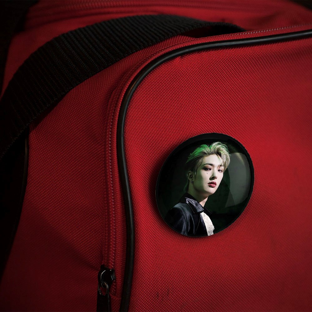 پیکسل 44 میلی متری مینگی گروه ایتیز ATEEZ خندالو با روکش سلفون حرارتی مات مخملی ضدخش و قطعه پشتی رنگی تولید شده است.پلاستیکی پشت پیکسل با سوزن یک تکه ثابت و بدون لغزش و جا به جایی، ایستایی بسیار بهتری نسبت به پشتی فلزی پیکسل دارند که این مهم در تولید این محصول نیز رعایت شده است.