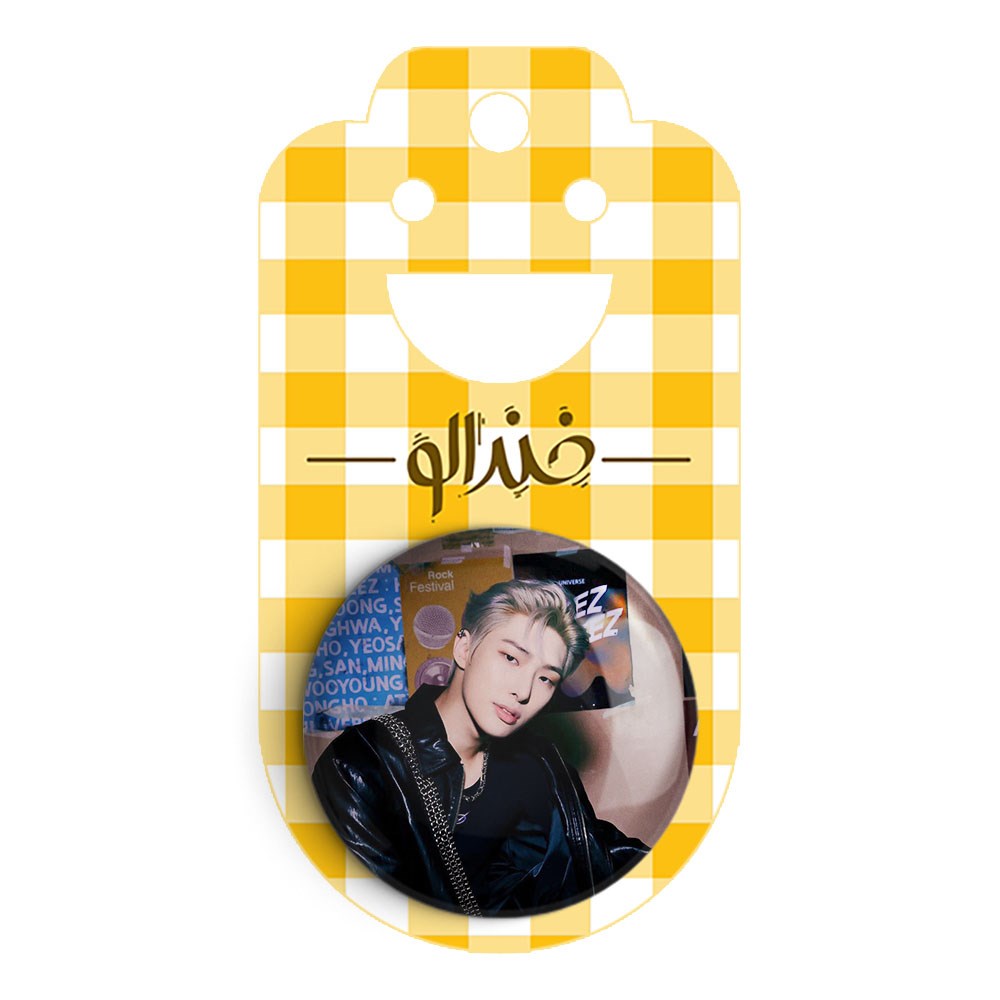 پیکسل 44 میلی متری مینگی گروه ایتیز ATEEZ خندالو با روکش سلفون حرارتی مات مخملی ضدخش و قطعه پشتی رنگی تولید شده است.پلاستیکی پشت پیکسل با سوزن یک تکه ثابت و بدون لغزش و جا به جایی، ایستایی بسیار بهتری نسبت به پشتی فلزی پیکسل دارند که این مهم در تولید این محصول نیز رعایت شده است.