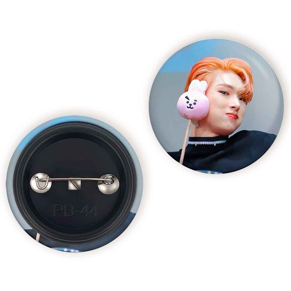 پیکسل 44 میلی متری مینگی گروه ایتیز ATEEZ خندالو با روکش سلفون حرارتی مات مخملی ضدخش و قطعه پشتی رنگی تولید شده است.پلاستیکی پشت پیکسل با سوزن یک تکه ثابت و بدون لغزش و جا به جایی، ایستایی بسیار بهتری نسبت به پشتی فلزی پیکسل دارند که این مهم در تولید این محصول نیز رعایت شده است.