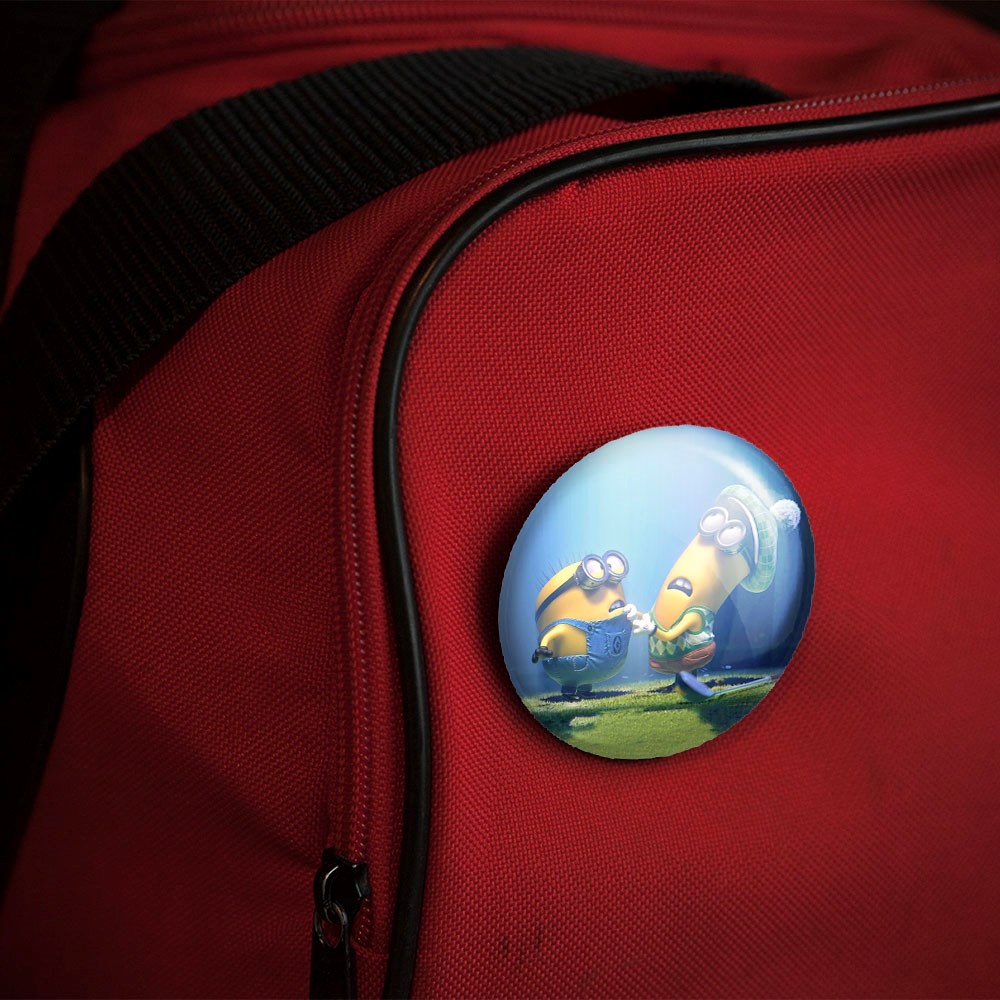 پیکسل 44 میلی متری مینیون ها Minions خندالو با روکش سلفون حرارتی مات مخملی ضدخش و قطعه پشتی رنگی تولید شده است.پلاستیکی پشت پیکسل با سوزن یک تکه ثابت و بدون لغزش و جا به جایی، ایستایی بسیار بهتری نسبت به پشتی فلزی پیکسل دارند که این مهم در تولید این محصول نیز رعایت شده است.
