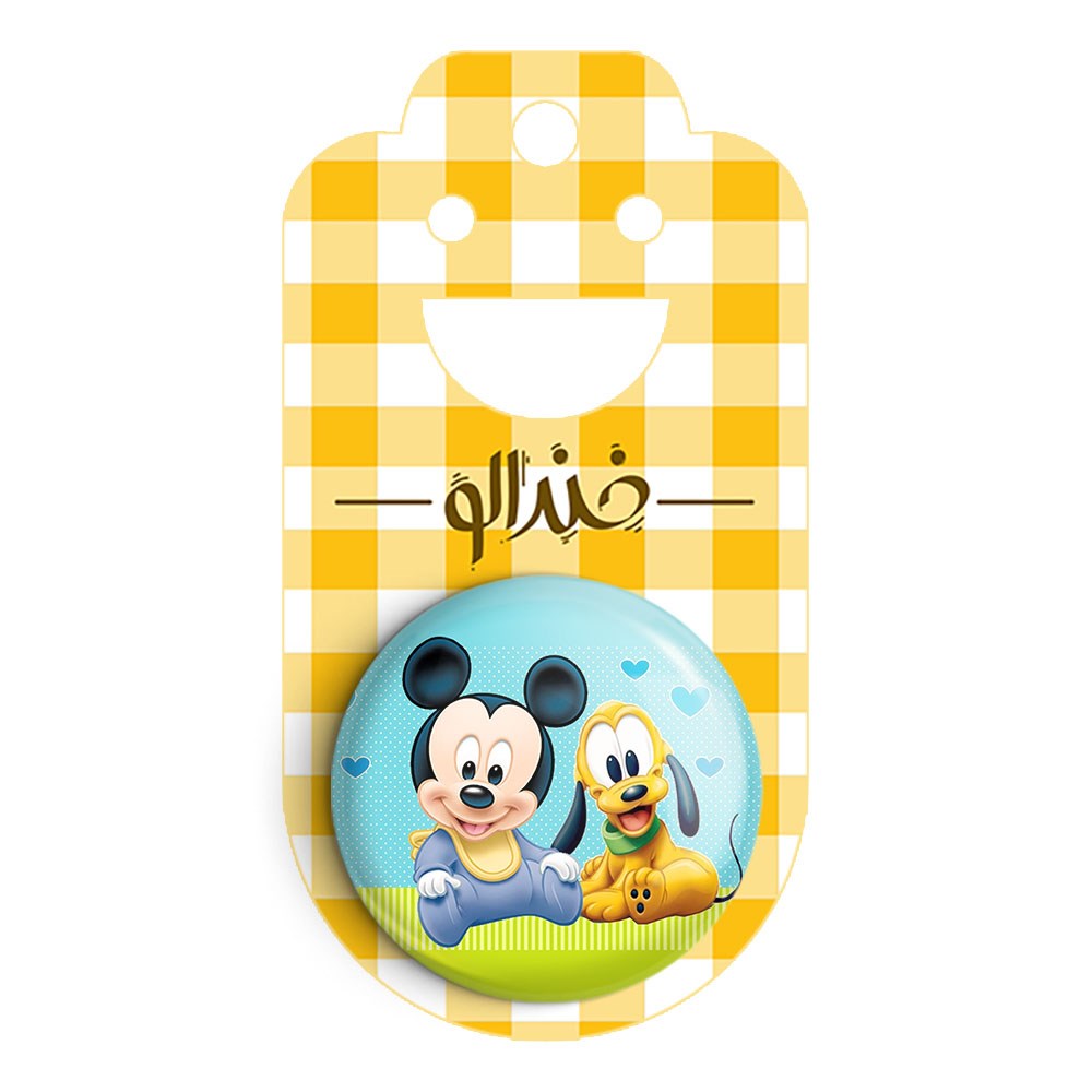 پیکسل 44 میلی متری میکی موس Mickey Mouse خندالو با روکش سلفون حرارتی مات مخملی ضدخش و قطعه پشتی رنگی تولید شده است.پلاستیکی پشت پیکسل با سوزن یک تکه ثابت و بدون لغزش و جا به جایی، ایستایی بسیار بهتری نسبت به پشتی فلزی پیکسل دارند که این مهم در تولید این محصول نیز رعایت شده است.