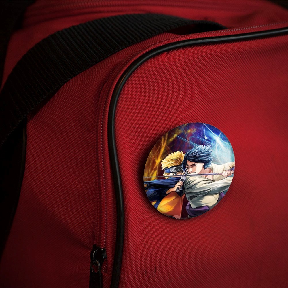 پیکسل 44 میلی متری ناروتو و ساسکه انیمه ناروتو Naruto خندالو با روکش سلفون حرارتی مات مخملی ضدخش و قطعه پشتی رنگی تولید شده است.پلاستیکی پشت پیکسل با سوزن یک تکه ثابت و بدون لغزش و جا به جایی، ایستایی بسیار بهتری نسبت به پشتی فلزی پیکسل دارند که این مهم در تولید این محصول نیز رعایت شده است.