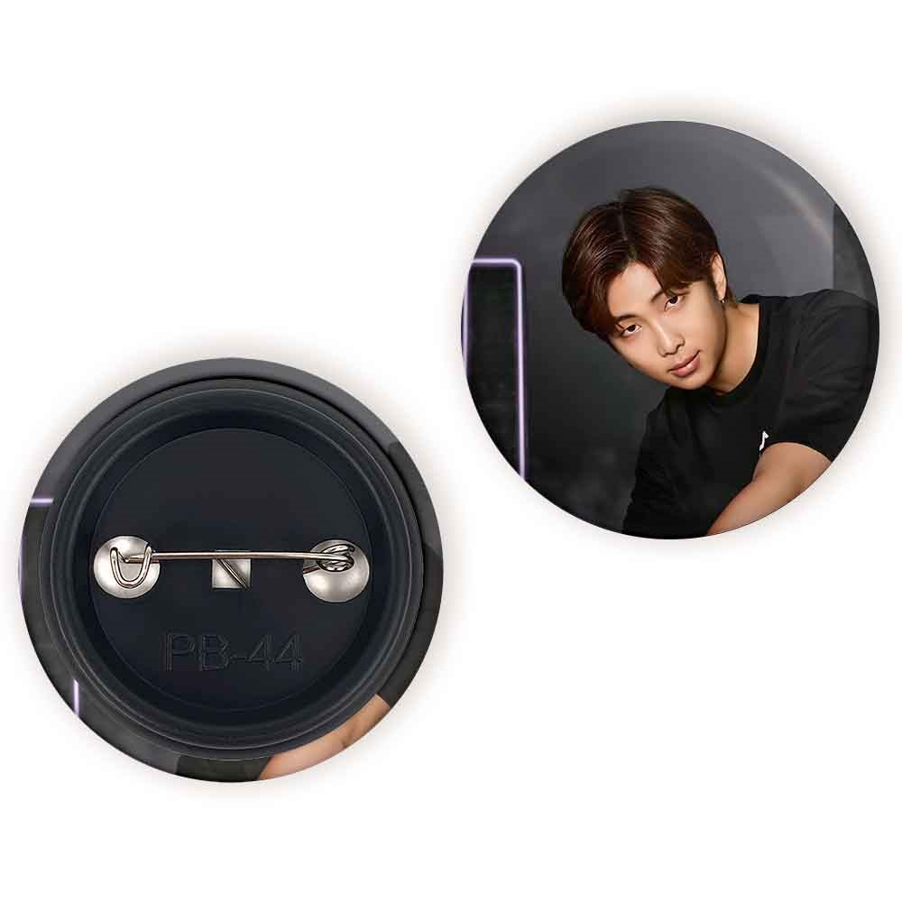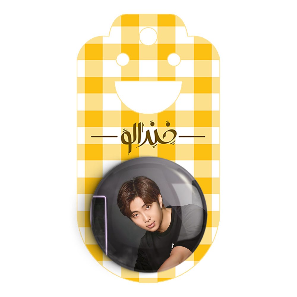 پیکسل 44 میلی متری نامجون Namjoon گروه بی تی اس BTS خندالو با روکش سلفون حرارتی مات مخملی ضدخش و قطعه پشتی رنگی تولید شده است.پلاستیکی پشت پیکسل با سوزن یک تکه ثابت و بدون لغزش و جا به جایی، ایستایی بسیار بهتری نسبت به پشتی فلزی پیکسل دارند که این مهم در تولید این محصول نیز رعایت شده است.