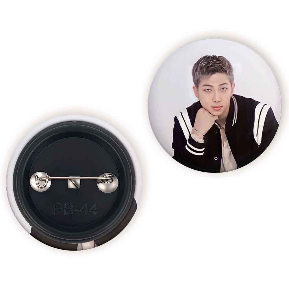 پیکسل 44 میلی متری نامجون Namjoon گروه بی تی اس BTS خندالو با روکش سلفون حرارتی مات مخملی ضدخش و قطعه پشتی رنگی تولید شده است.پلاستیکی پشت پیکسل با سوزن یک تکه ثابت و بدون لغزش و جا به جایی، ایستایی بسیار بهتری نسبت به پشتی فلزی پیکسل دارند که این مهم در تولید این محصول نیز رعایت شده است.