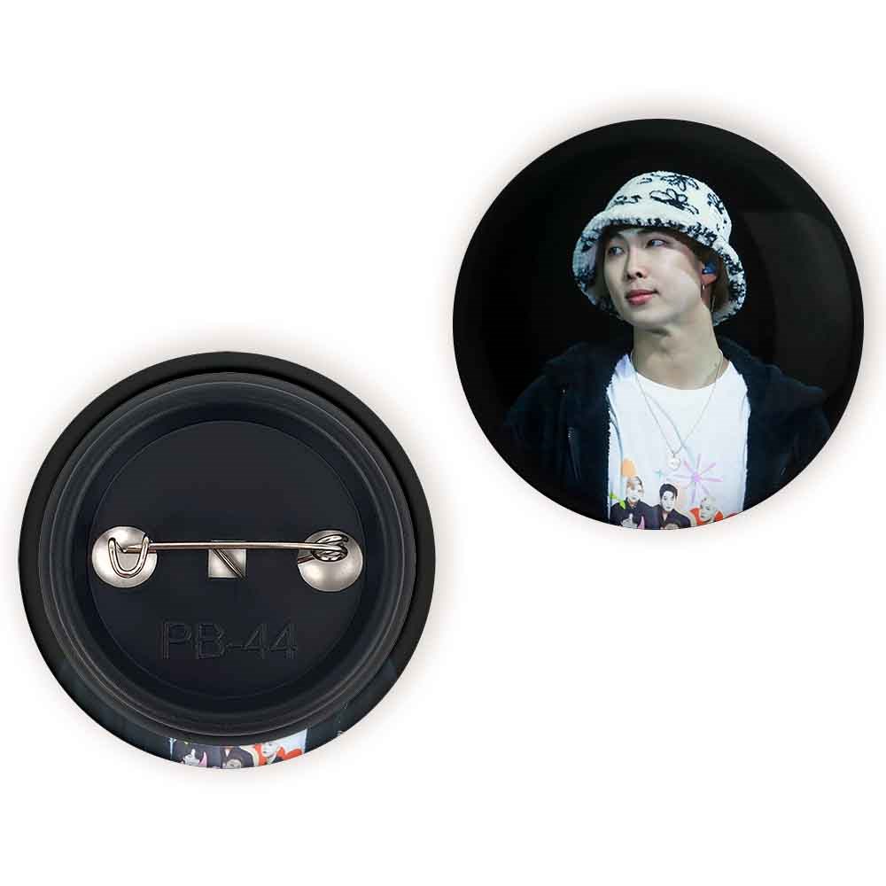 پیکسل 44 میلی متری نامجون Namjoon گروه بی تی اس BTS خندالو با روکش سلفون حرارتی مات مخملی ضدخش و قطعه پشتی رنگی تولید شده است.پلاستیکی پشت پیکسل با سوزن یک تکه ثابت و بدون لغزش و جا به جایی، ایستایی بسیار بهتری نسبت به پشتی فلزی پیکسل دارند که این مهم در تولید این محصول نیز رعایت شده است.