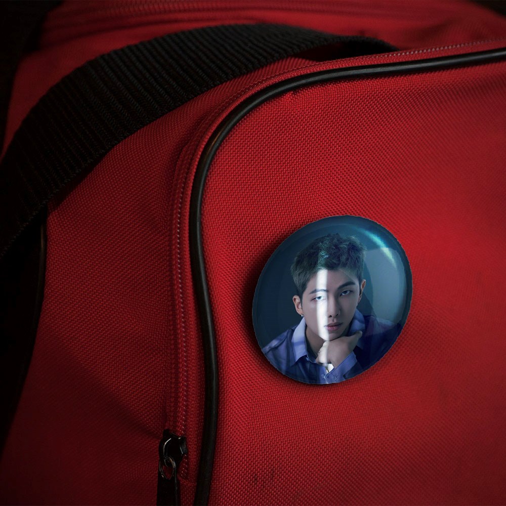 پیکسل 44 میلی متری نامجون Namjoon گروه بی تی اس BTS خندالو با روکش سلفون حرارتی مات مخملی ضدخش و قطعه پشتی رنگی تولید شده است.پلاستیکی پشت پیکسل با سوزن یک تکه ثابت و بدون لغزش و جا به جایی، ایستایی بسیار بهتری نسبت به پشتی فلزی پیکسل دارند که این مهم در تولید این محصول نیز رعایت شده است.