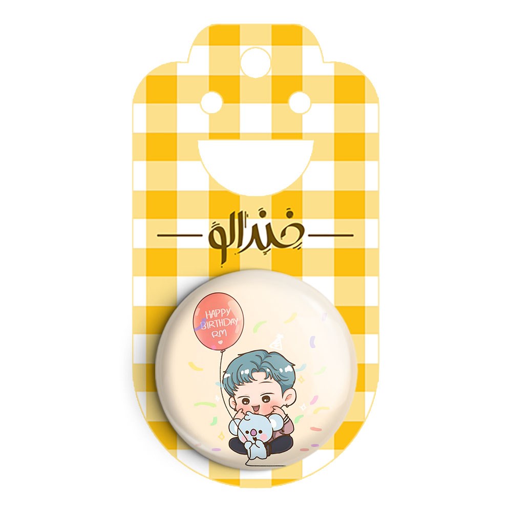 پیکسل 44 میلی متری نامجون Namjoon گروه بی تی اس BTS خندالو با روکش سلفون حرارتی مات مخملی ضدخش و قطعه پشتی رنگی تولید شده است.پلاستیکی پشت پیکسل با سوزن یک تکه ثابت و بدون لغزش و جا به جایی، ایستایی بسیار بهتری نسبت به پشتی فلزی پیکسل دارند که این مهم در تولید این محصول نیز رعایت شده است.