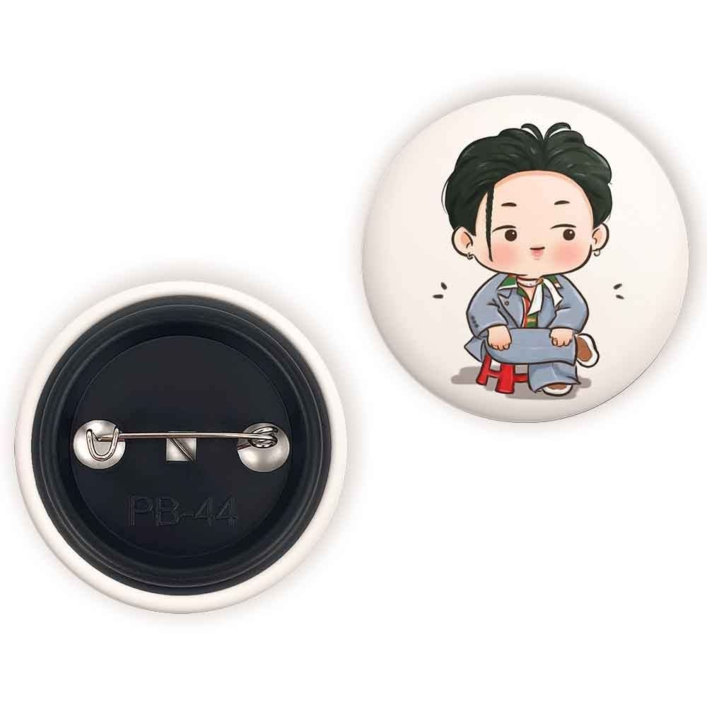 پیکسل 44 میلی متری نامجون Namjoon گروه بی تی اس BTS خندالو با روکش سلفون حرارتی مات مخملی ضدخش و قطعه پشتی رنگی تولید شده است.پلاستیکی پشت پیکسل با سوزن یک تکه ثابت و بدون لغزش و جا به جایی، ایستایی بسیار بهتری نسبت به پشتی فلزی پیکسل دارند که این مهم در تولید این محصول نیز رعایت شده است.