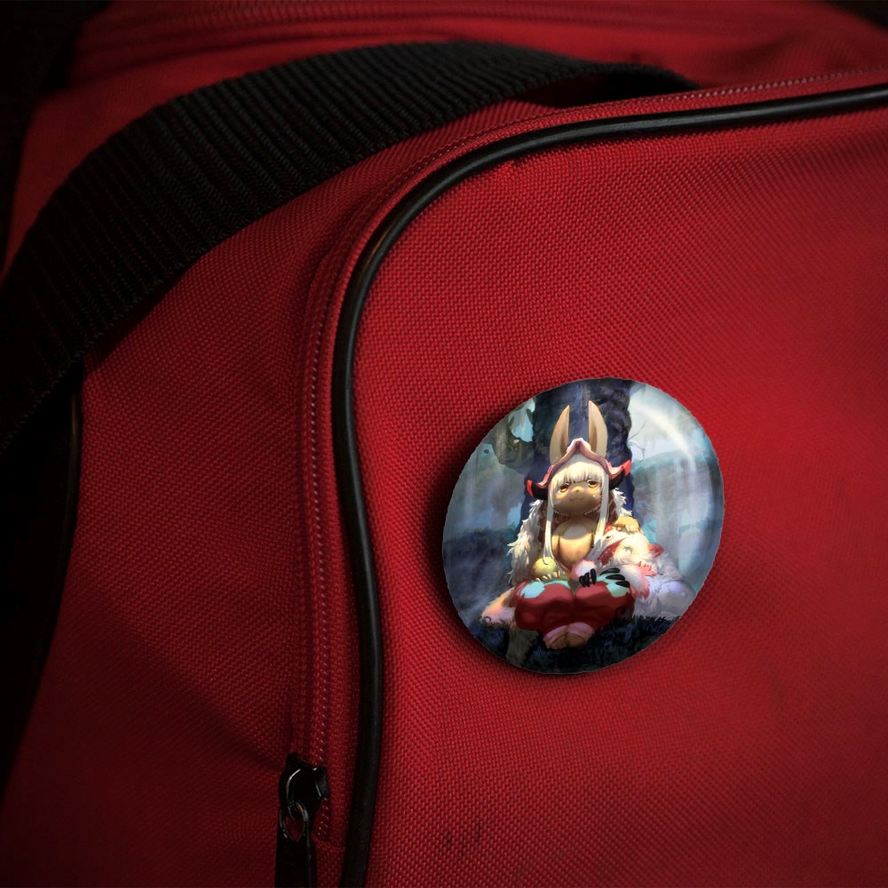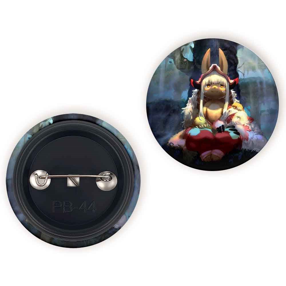 پیکسل 44 میلی متری ناناچی انیمه ساخته شده در پرتگاه Made in Abyss خندالو با روکش سلفون حرارتی مات مخملی ضدخش و قطعه پشتی رنگی تولید شده است.پلاستیکی پشت پیکسل با سوزن یک تکه ثابت و بدون لغزش و جا به جایی، ایستایی بسیار بهتری نسبت به پشتی فلزی پیکسل دارند که این مهم در تولید این محصول نیز رعایت شده است.
