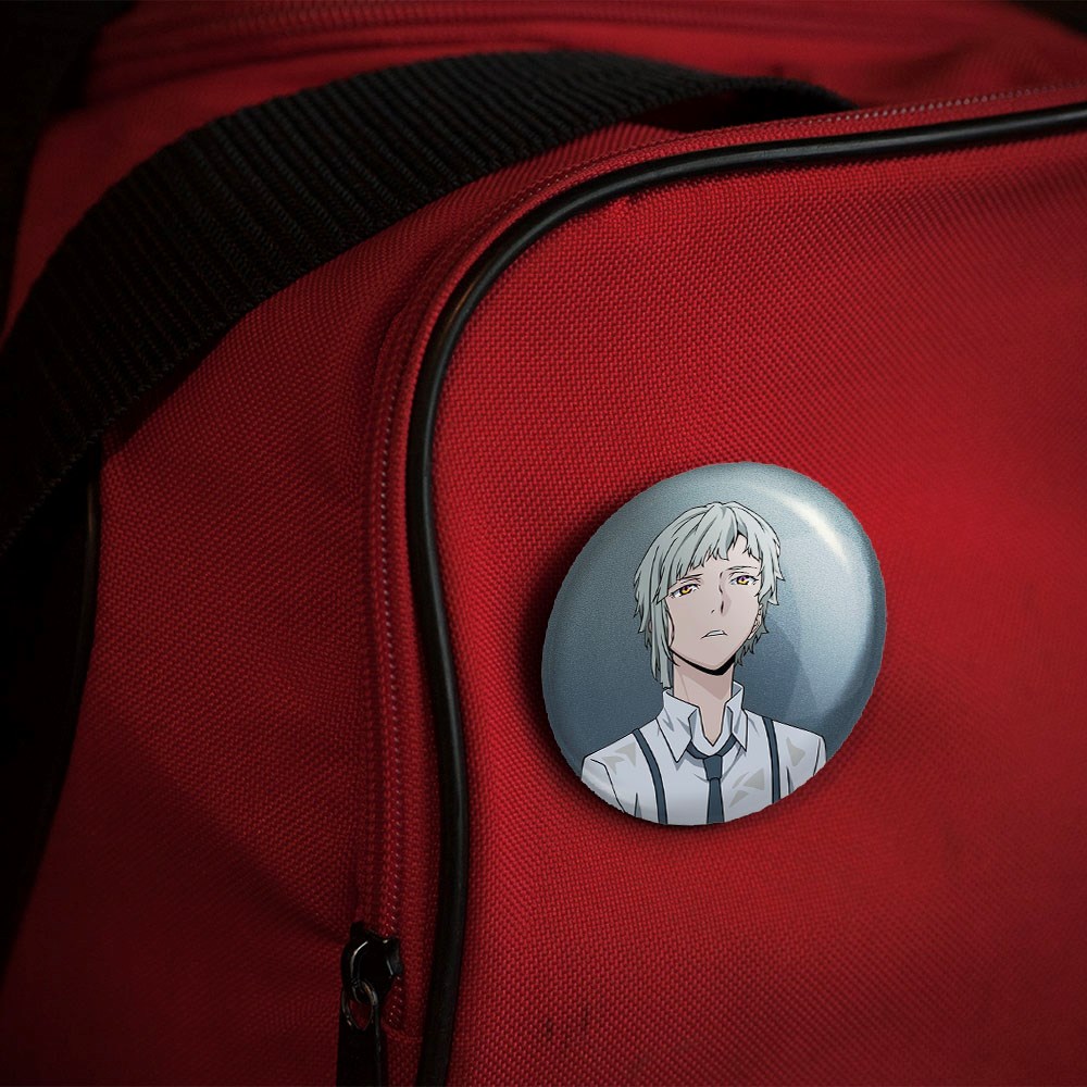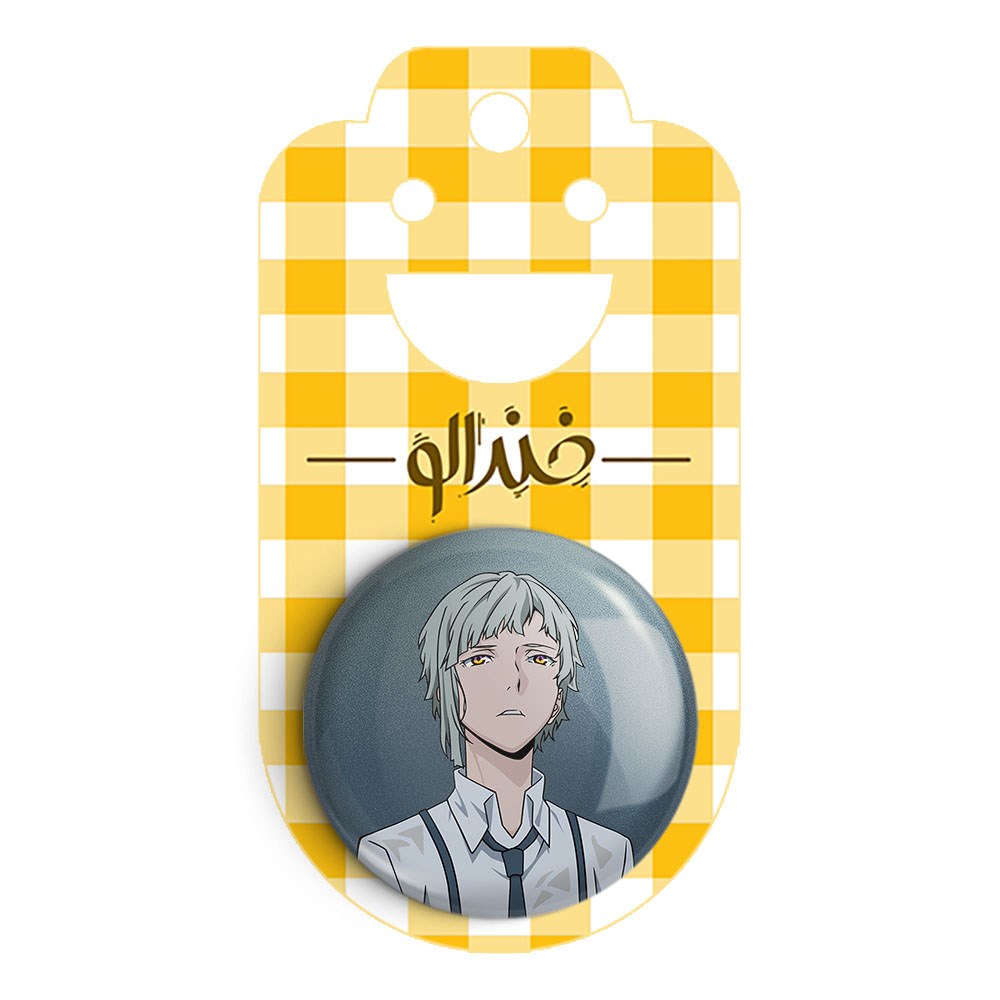 پیکسل 44 میلی متری ناکاجیما اتسوشی انیمه سگ های ولگرد بانگو خندالو با روکش سلفون حرارتی مات مخملی ضدخش و قطعه پشتی رنگی تولید شده است.پلاستیکی پشت پیکسل با سوزن یک تکه ثابت و بدون لغزش و جا به جایی، ایستایی بسیار بهتری نسبت به پشتی فلزی پیکسل دارند که این مهم در تولید این محصول نیز رعایت شده است.