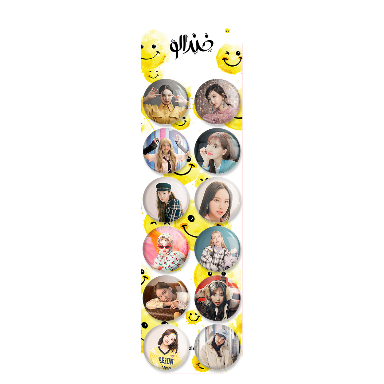 پک 12 عددی پیکسل خندالو طرح نایون توایس (Twice) با روکش سلفون حرارتی براق ضدخش و قطعه پشتی رنگی تولید شده است. قطعات پشتی از میان 6 رنگ سفید، مشکی، صورتی، زرد، آبی و قرمز که با توجه به نوع و رنگبندی طرح روی پیکسل انتخاب شده اند تولید می شود و در هر بسته بندی مطابق عکس محصول می باشد. قطعات پلاستیکی پشت پیکسل با سوزن یک تکه ثابت و بدون لغزش و جا به جایی، ایستایی بسیار بهتری نسبت به پشتی فلزی پیکسل دارند که این مهم در تولید این محصول نیز رعایت شده است. چاپ پیکسل طرح نایون توایس (Twice) بسته ۱۲ عددی نیز با دستگاه های استاندارد و با بهترین سطح کیفی صورت گرفته و طرح با شفافیتی مثال زدنی و با سلفونی بدون شکست نور بر روی پیکسل نقش بسته است.