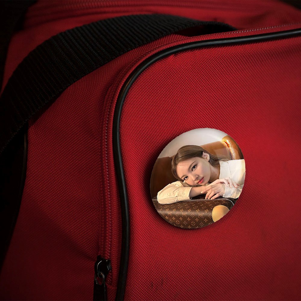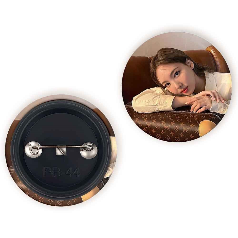 پیکسل 44 میلی متری نایون گروه توایس TWICE خندالو با روکش سلفون حرارتی مات مخملی ضدخش و قطعه پشتی رنگی تولید شده است.پلاستیکی پشت پیکسل با سوزن یک تکه ثابت و بدون لغزش و جا به جایی، ایستایی بسیار بهتری نسبت به پشتی فلزی پیکسل دارند که این مهم در تولید این محصول نیز رعایت شده است.