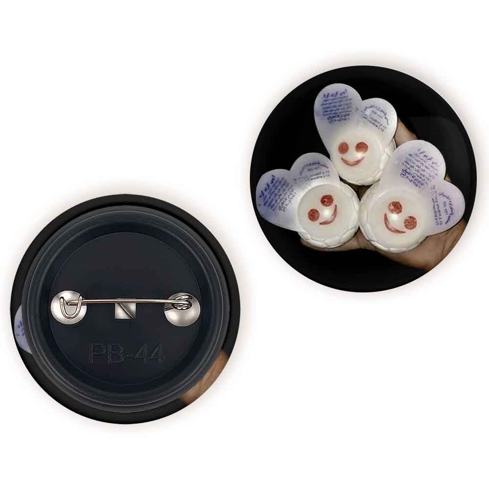 پیکسل 44 میلی متری نوستالژی خندالو با روکش سلفون حرارتی مات مخملی ضدخش و قطعه پشتی رنگی تولید شده است.پلاستیکی پشت پیکسل با سوزن یک تکه ثابت و بدون لغزش و جا به جایی، ایستایی بسیار بهتری نسبت به پشتی فلزی پیکسل دارند که این مهم در تولید این محصول نیز رعایت شده است.