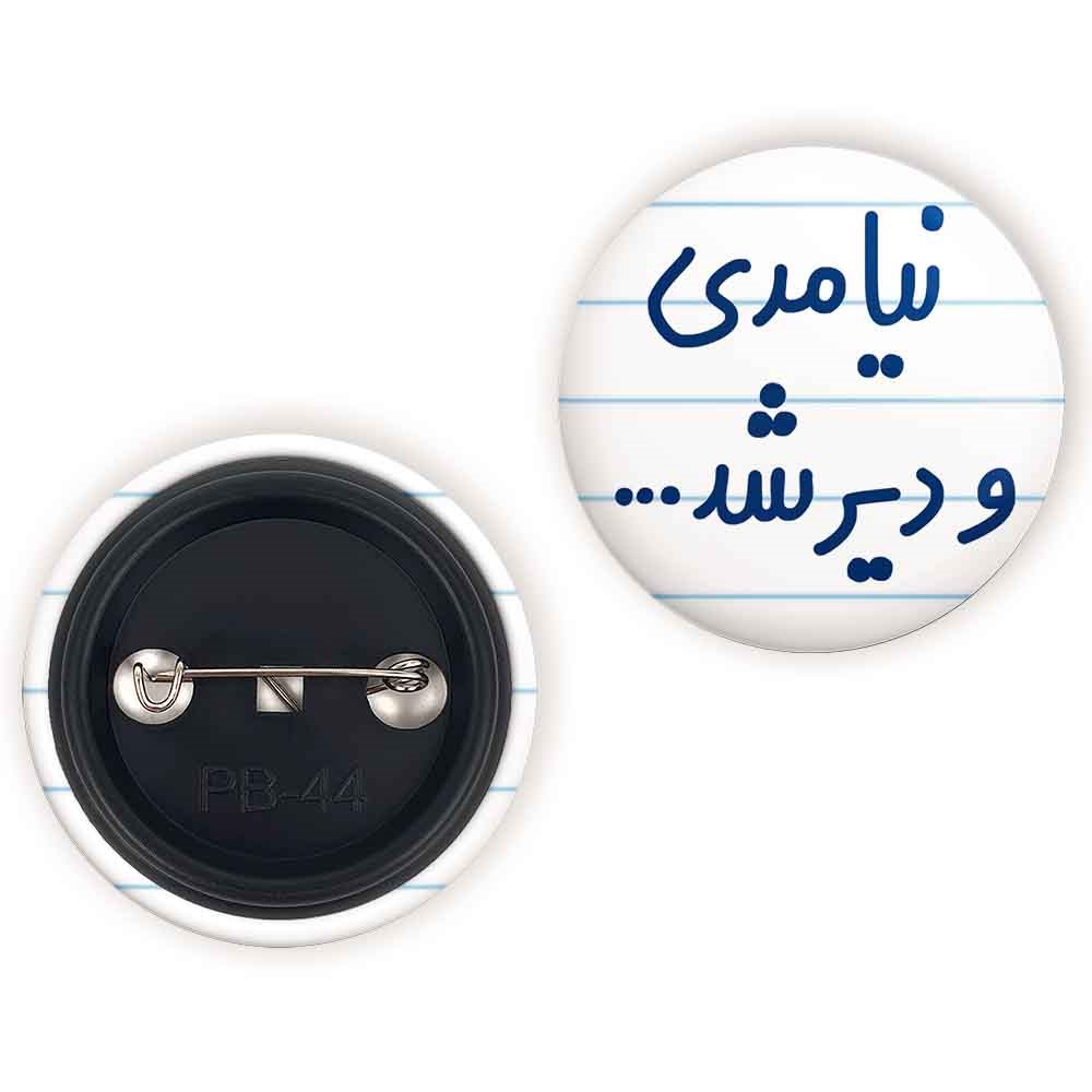 پیکسل 44 میلی متری نیامدی و دیر شد… خندالو با روکش سلفون حرارتی مات مخملی ضدخش و قطعه پشتی رنگی تولید شده است. قطعات پلاستیکی پشت پیکسل با سوزن یک تکه ثابت و بدون لغزش و جا به جایی، ایستایی بسیار بهتری نسبت به پشتی فلزی پیکسل دارند که این مهم در تولید این محصول نیز رعایت شده است. چاپ پیکسل نیامدی و دیر شد… نیز با دستگاه های استاندارد و با بهترین سطح کیفی صورت گرفته و طرح با شفافیتی مثال زدنی و با سلفونی بدون شکست نور بر روی پیکسل نقش بسته است. همچنین بسته بندی جذاب و مینیمال پیکسل نیامدی و دیر شد… ، آنها را مناسب هدیه کرده است.