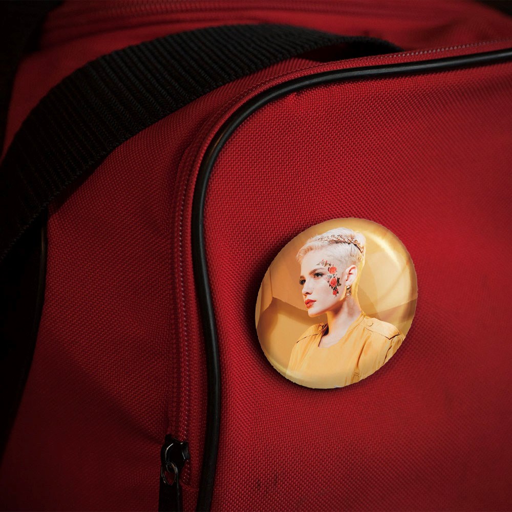 پیکسل 44 میلی متری هالزی Halsey خندالو با روکش سلفون حرارتی مات مخملی ضدخش و قطعه پشتی رنگی تولید شده است.پلاستیکی پشت پیکسل با سوزن یک تکه ثابت و بدون لغزش و جا به جایی، ایستایی بسیار بهتری نسبت به پشتی فلزی پیکسل دارند که این مهم در تولید این محصول نیز رعایت شده است.