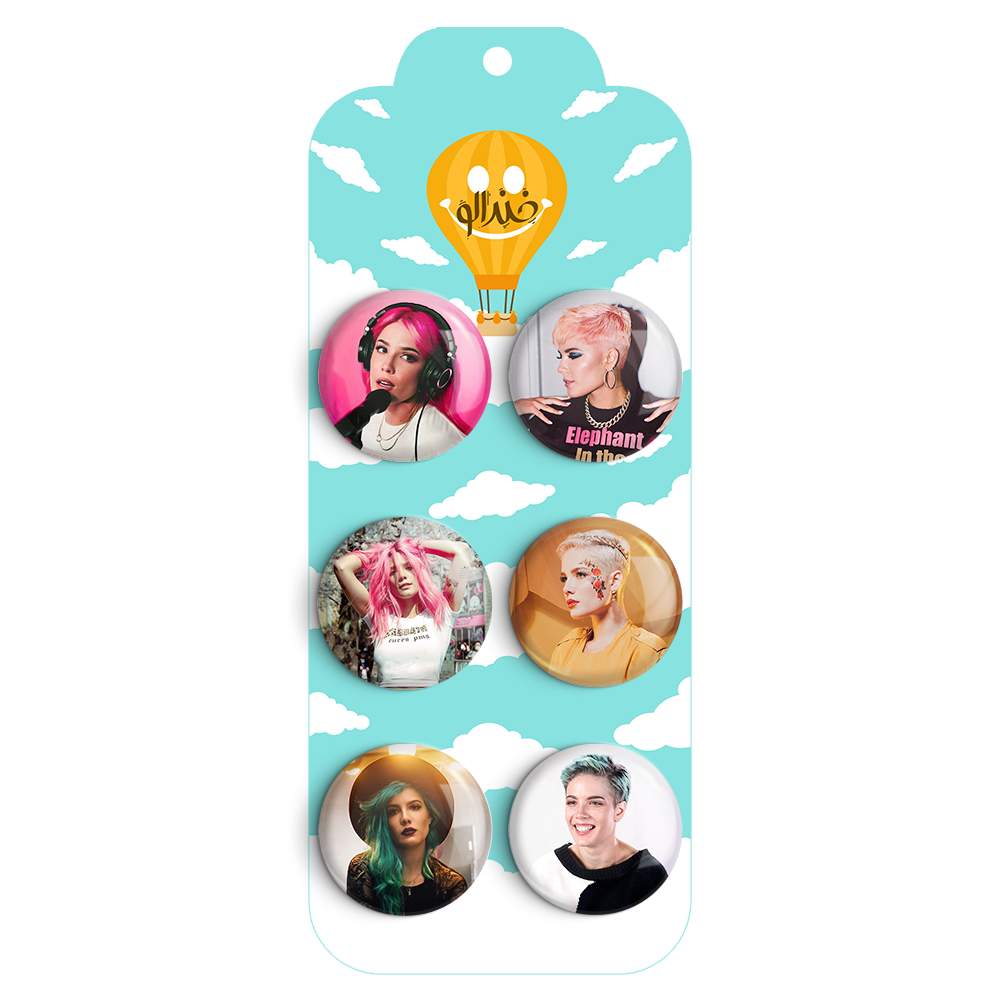 مجموعه 6 عددی پیکسل خندالو طرح هالزی (Halsey) با روکش سلفون حرارتی براق ضدخش و قطعه پشتی رنگی تولید شده است. قطعات پشتی از میان 6 رنگ سفید، مشکی، صورتی، زرد، آبی و قرمز که با توجه به نوع و رنگبندی طرح روی پیکسل انتخاب شده اند تولید می شود و در هر بسته بندی مطابق عکس محصول می باشد.