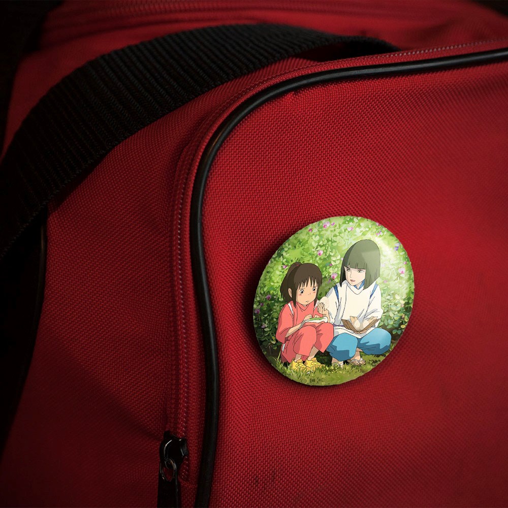 پیکسل 44 میلی متری هاکو و چیهیرو انیمه شهر اشباح Spirited Away خندالو با روکش سلفون حرارتی مات مخملی ضدخش و قطعه پشتی رنگی تولید شده است.پلاستیکی پشت پیکسل با سوزن یک تکه ثابت و بدون لغزش و جا به جایی، ایستایی بسیار بهتری نسبت به پشتی فلزی پیکسل دارند که این مهم در تولید این محصول نیز رعایت شده است.